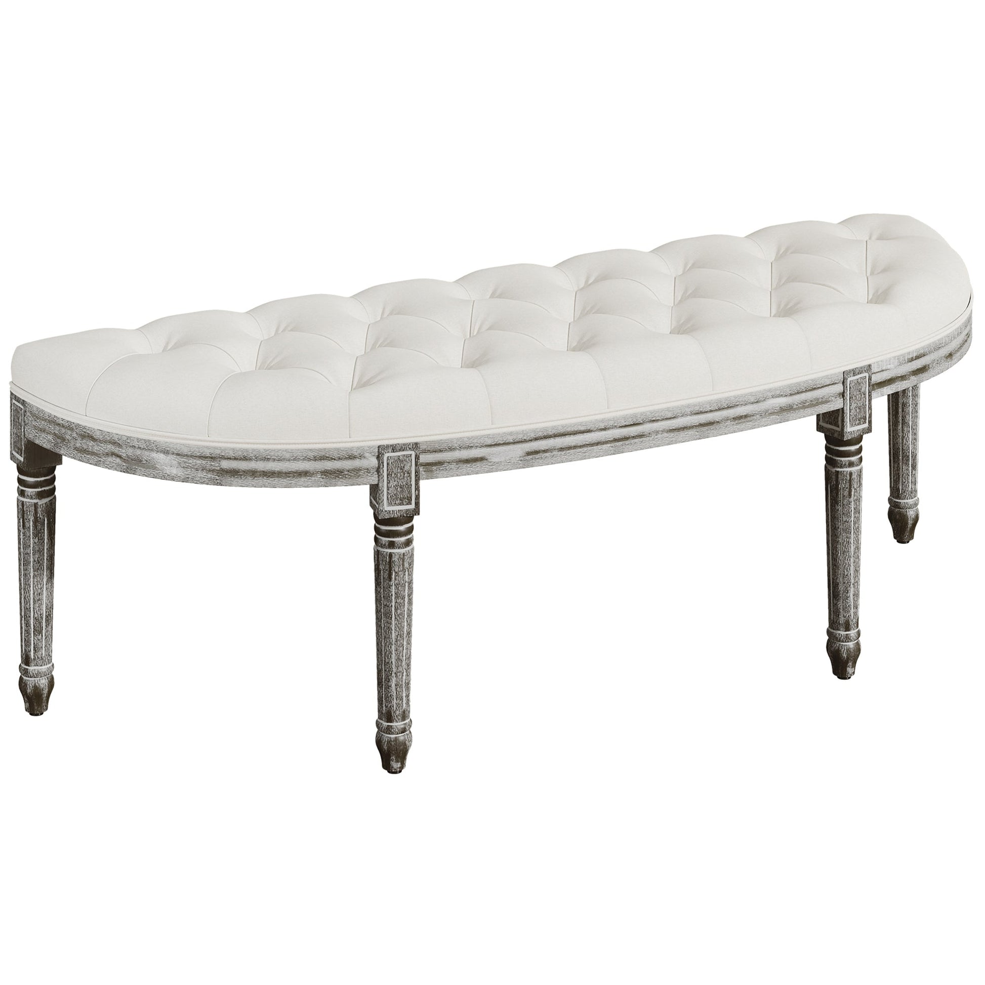 HOMCOM Half-Circle End Bench Ottoman Footstool Tufting Padded Seat Brushed Wood Base Antique Accents Home Seat Furniture Cream White and Light Wood Grain Leg
