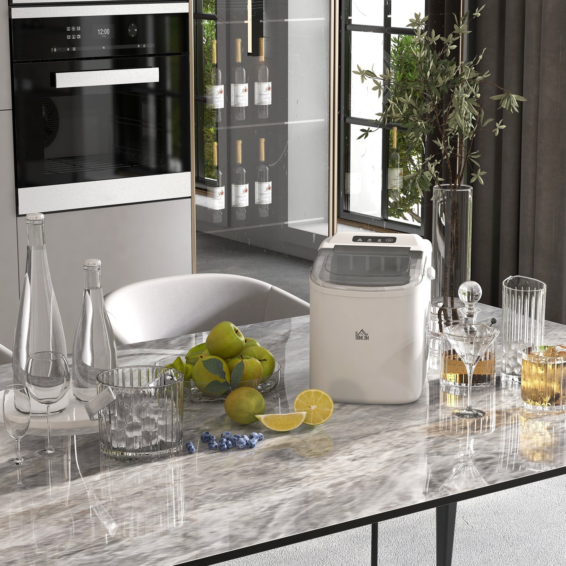 HOMCOM Ice Maker Machine Counter Top, 12Kg in 24 Hrs, 9 Cubes Ready in 6-12Mins, Portable Ice Cube Maker with Ice Scoop and Basket, White