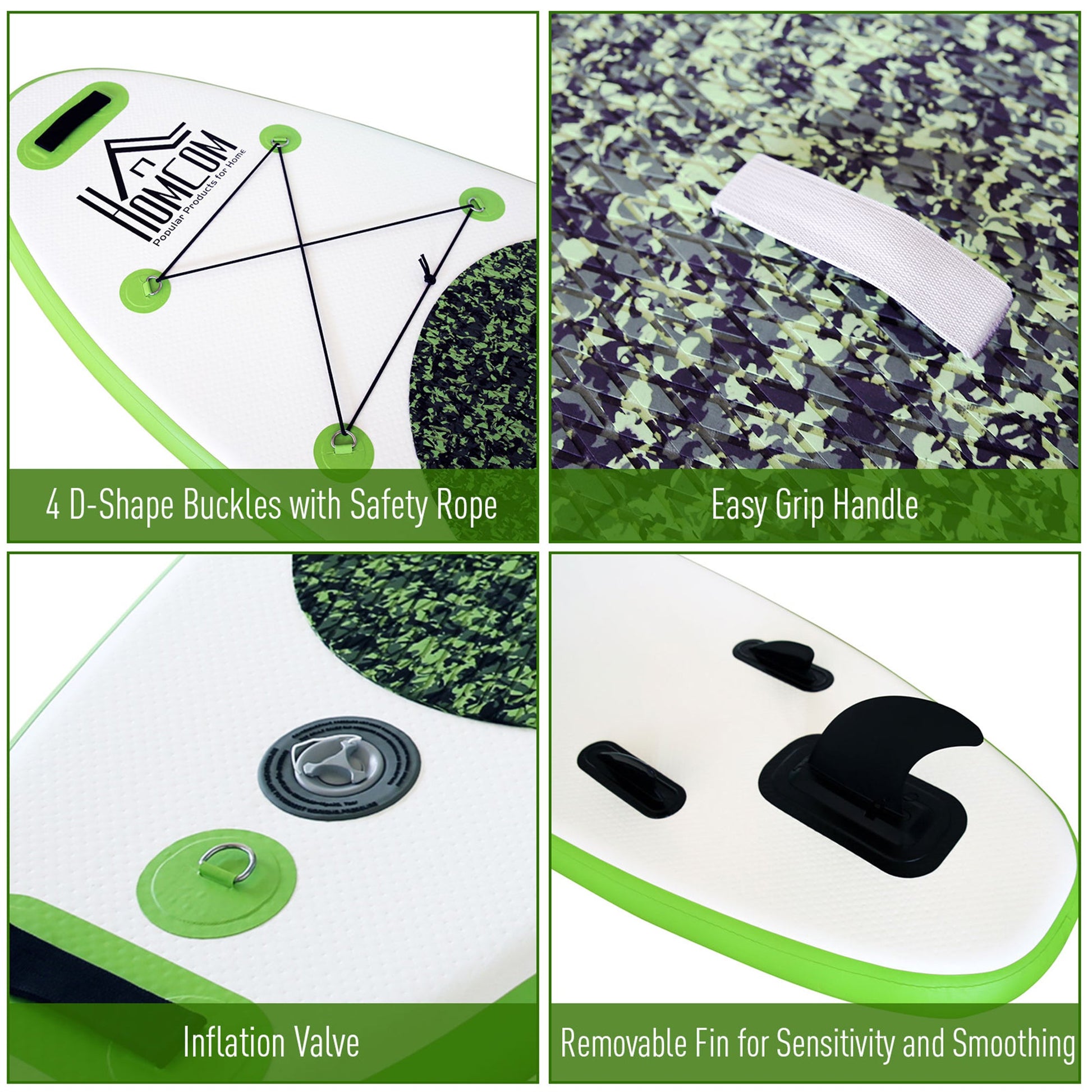 HOMCOM Inflatable Stand Up Paddle Board, 10' x 30" x 4", Non-Slip SUP, with ISUP Accessories, Hand Pump, 3 Fins, Adj Paddle for Youth Adult Beginners/Experts