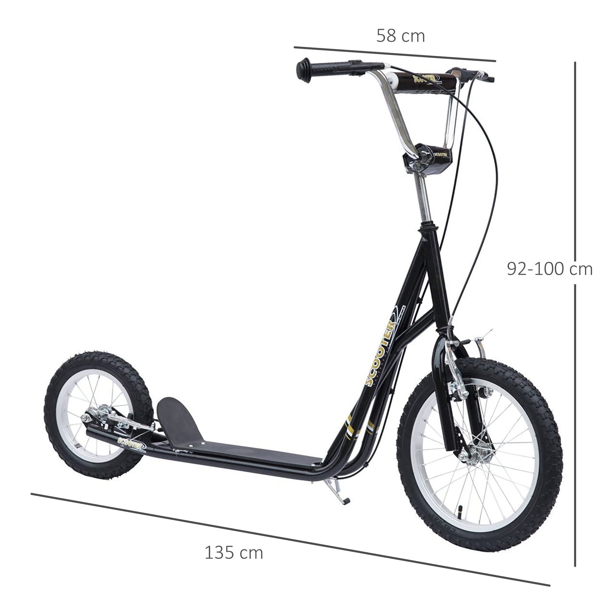 HOMCOM Kids Scooter, Teen Kick Scooter with Rubber Wheels, 16" Front Wheel, Height Adjustable Handlebar, Dual Brakes, Kick Stand, for 5+ Years, Black