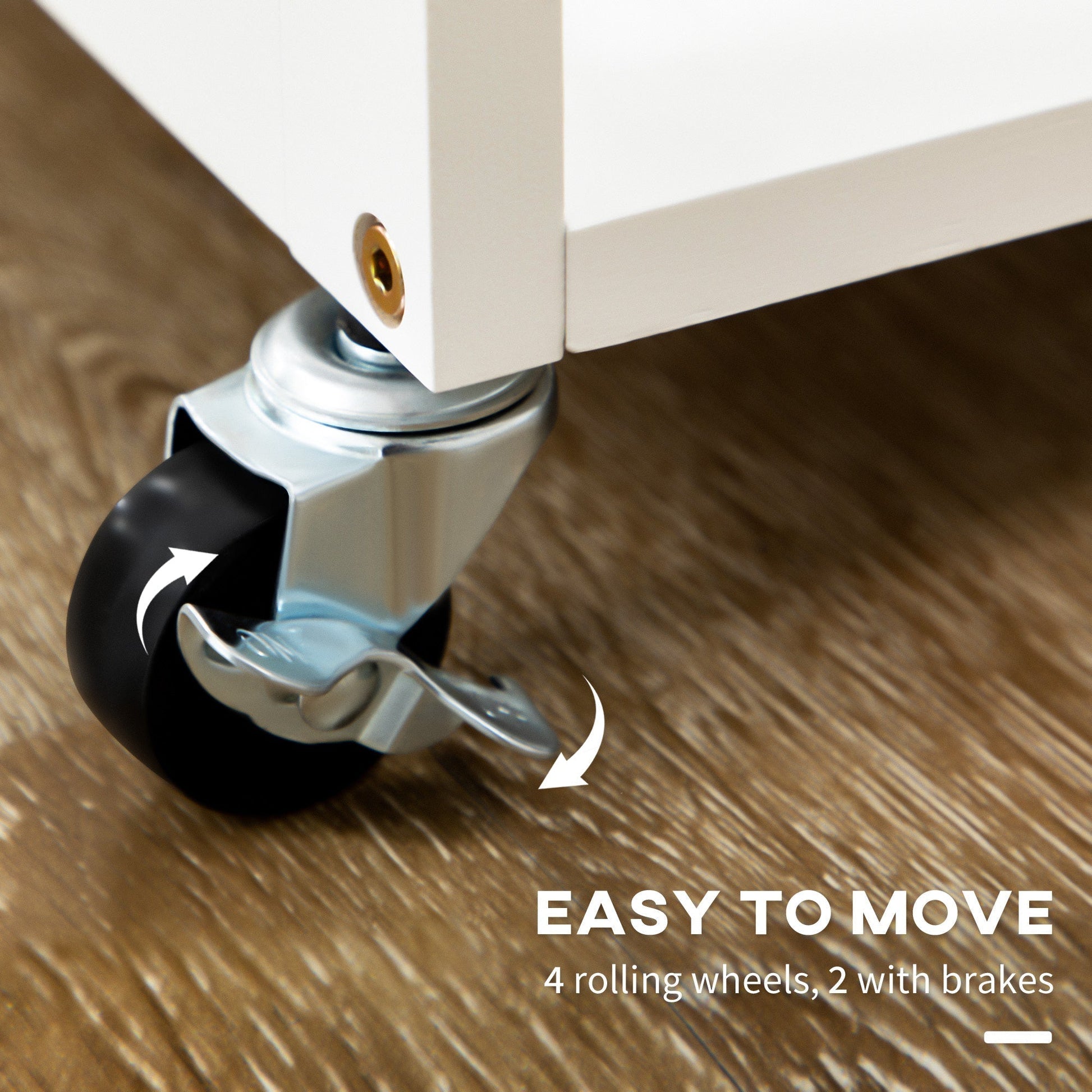 A 2-in-1 set to relax and dine with company - say hello to this HOMCOM breakfast bar set. It comes with a drop-leaf table and two stools - room for you and company. Lift up the table top to extend the dining space; use the two drawers to store smaller items close to you for convenience. The two stools slide into the table - a compact set which tucks neatly into corners when not needed. Complete with lockable wheels to move it around and set into a place of your choice.