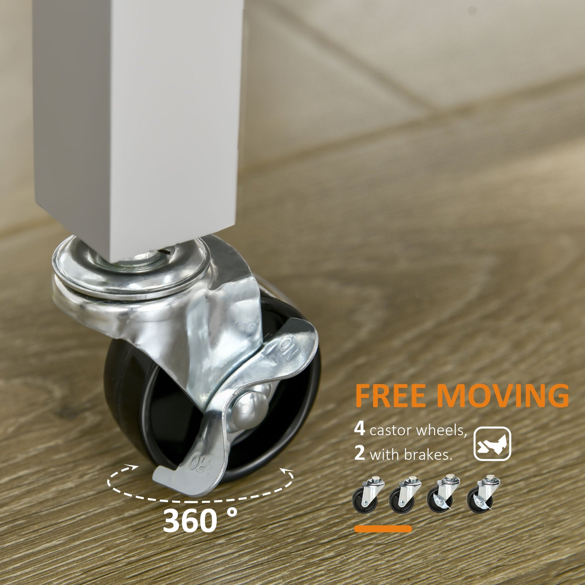 Whether it’s for a helping hand at parties, or extending room in the kitchen every day, look to this island cabinet from HOMCOM. It is fitted with four wheels to move easily. Features a drawer and two open shelves for plenty of storage and holding room of food, crockery and bottles. The towel rack on the side means you can hang a dishcloth in a memorable spot. Finished with a solid rubber wood top for easy and solid preparation space.
