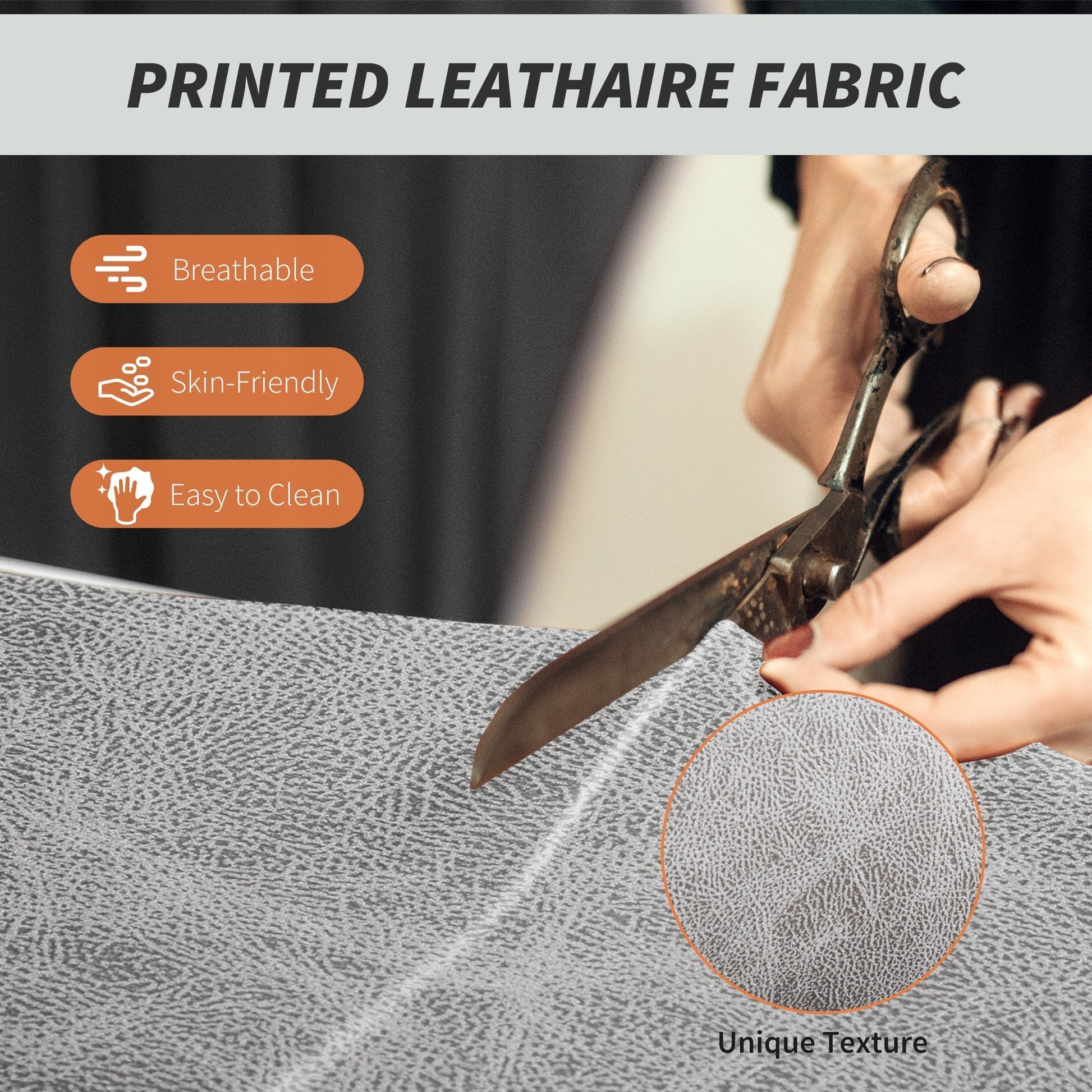 - Printed leathaire fabric combines breathability with a leather-like appearance