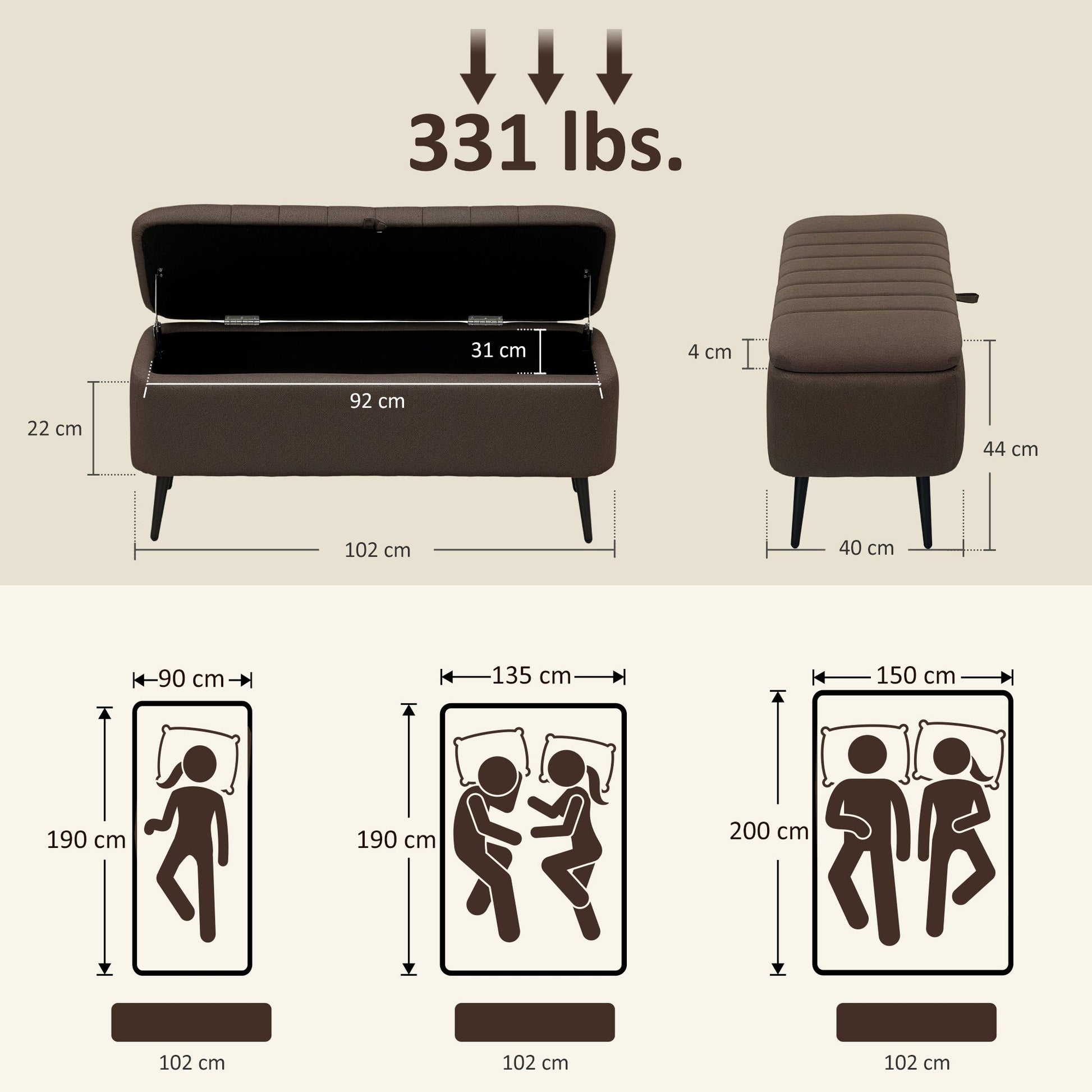 HOMCOM Linen-Look 92 x 31cm Storage Ottoman - Dark Brown