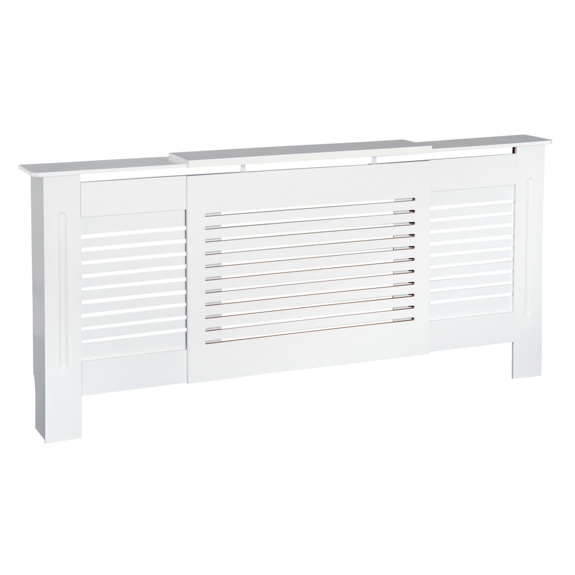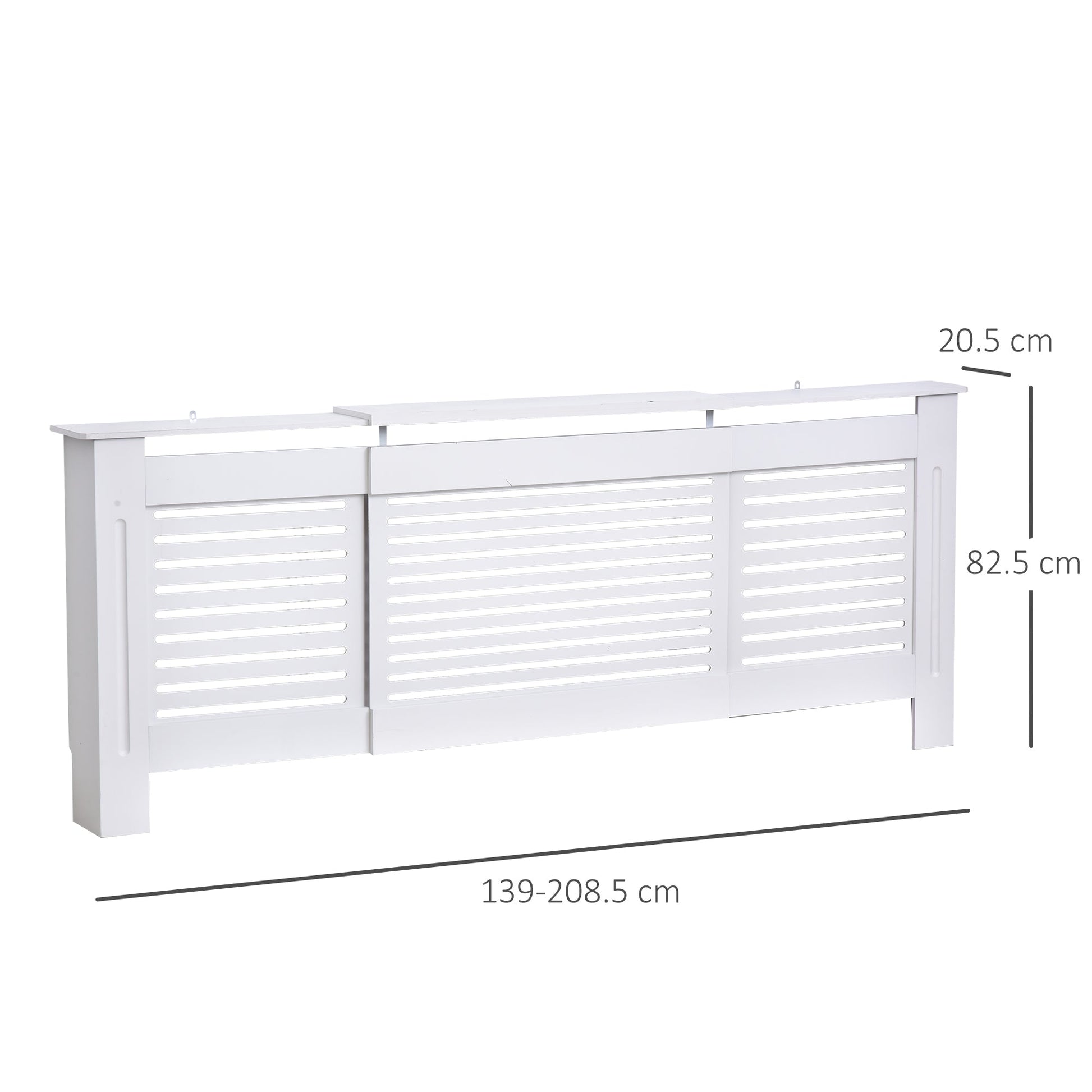 HOMCOM MDF Extendable Radiator Cover Cabinet Shelving Home Office Slatted Design White 139-208.5L x 20.5W x 82.5H cm
