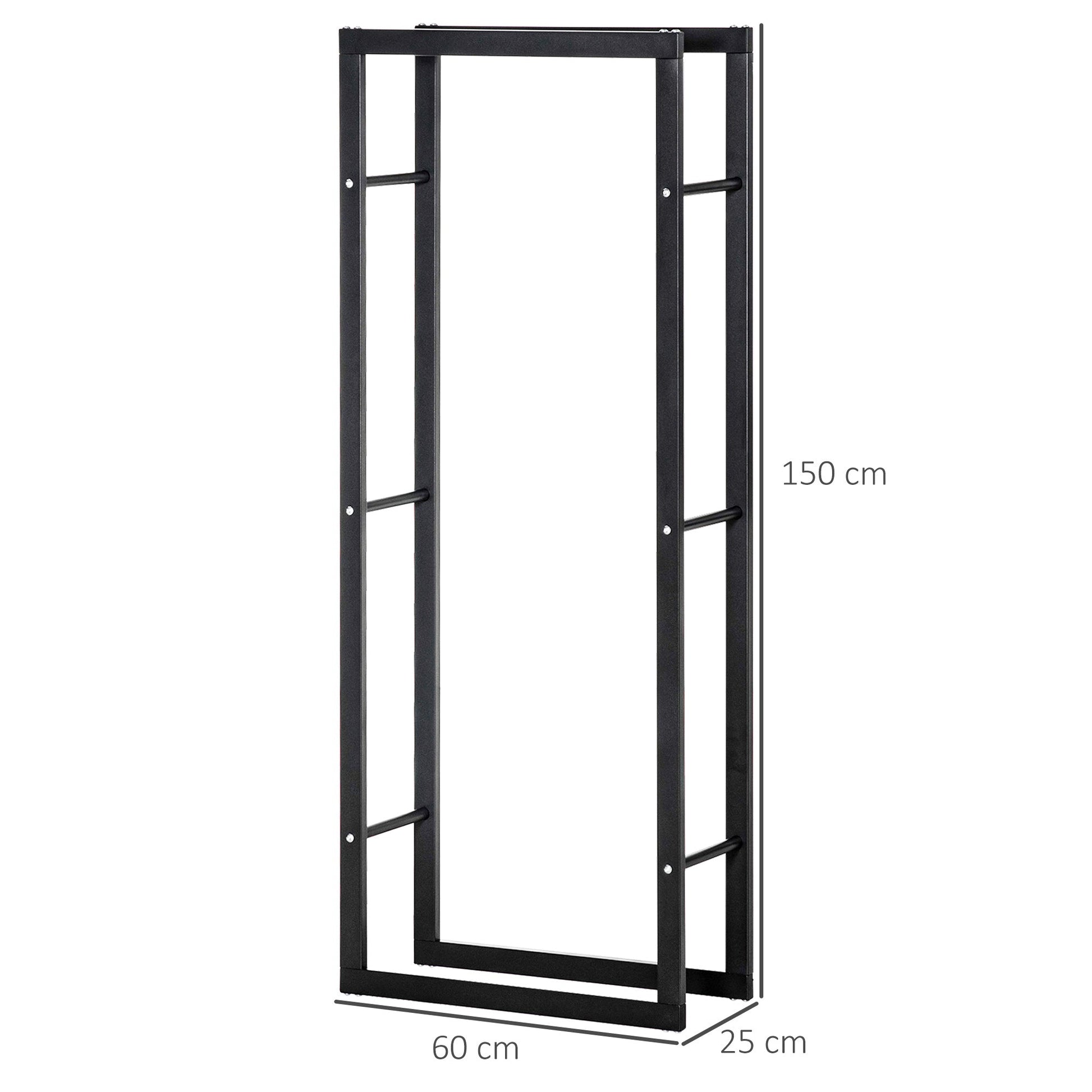 HOMCOM Metal Firewood Log Holder Tall Firewood Rack Indoor Outdoor Fireplace Wood Storage Shelf, Black, 60Wx25Dx150Hcm
