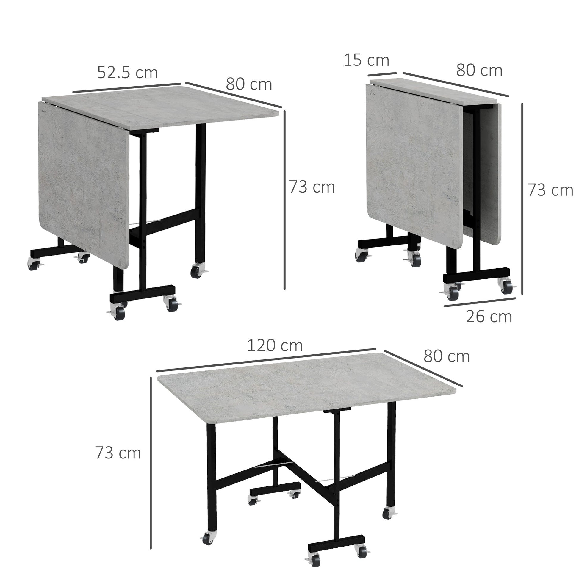 HOMCOM Mobile Drop Leaf Table, Folding Dining Table with 6 Wheels & Brakes, Kitchen Table for Small Spaces, Grey Marble Effect