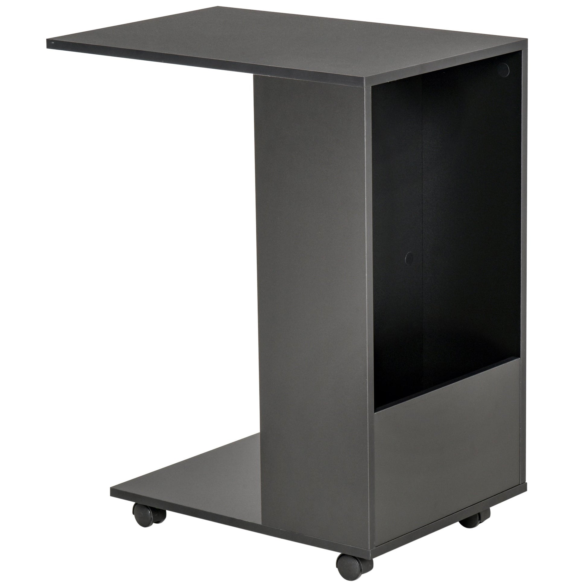HOMCOM Mobile Sofa Side Table C-Shape End Table with Storage and Casters for Laptop Coffee Snack, Black