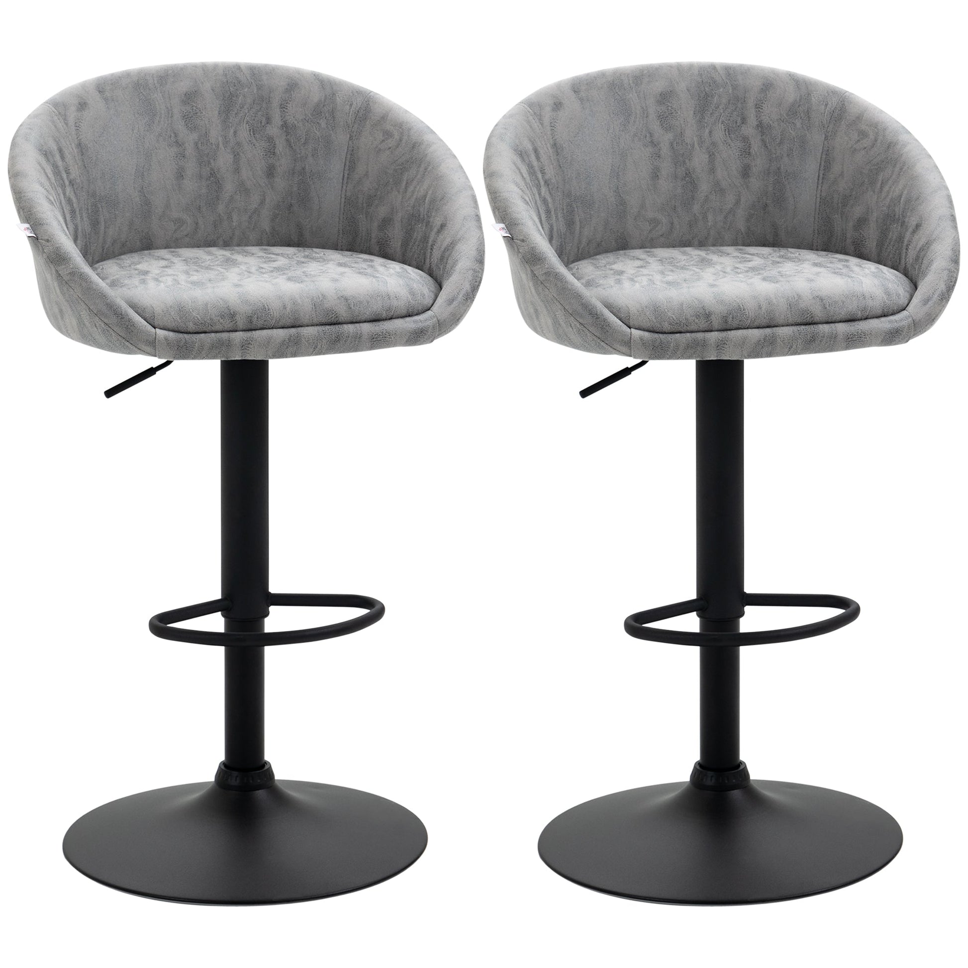 HOMCOM Modern Bar Stools Set of 2, Height Adjustable Swivel Barstools, PU Leather Upholstered Bar Chair with Backrest, Armrests and Footrest for Breakfast Bar, Counter, Kitchen, Light Grey