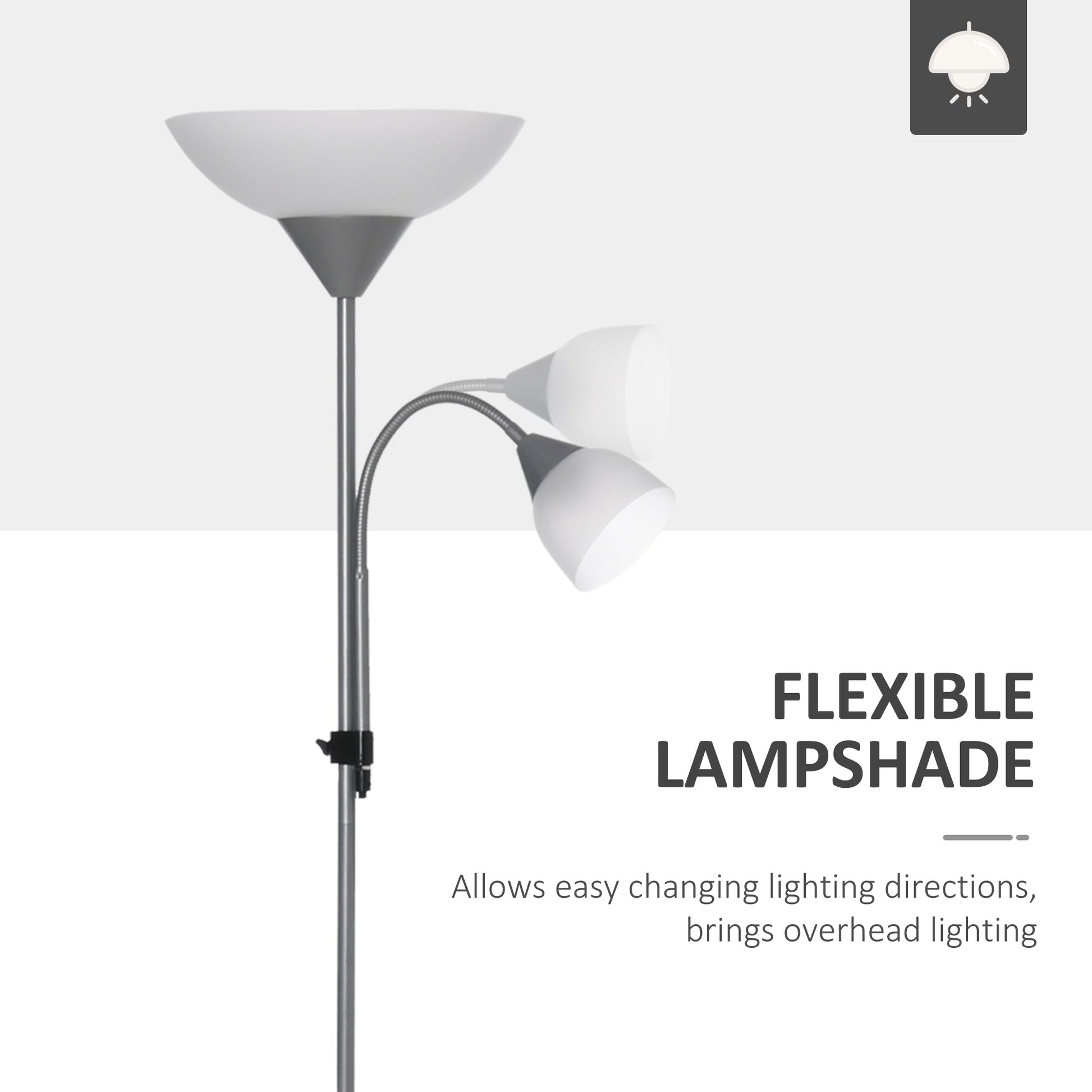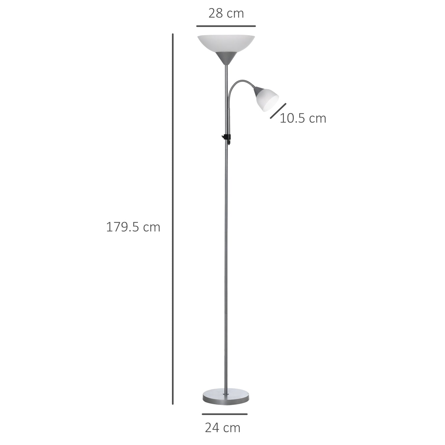 HOMCOM LED Floor Lamp for Living Room, 180cm Tall Standing Lamp, Mother and Child Uplighter with Adjustable Gooseneck, Silver Tone