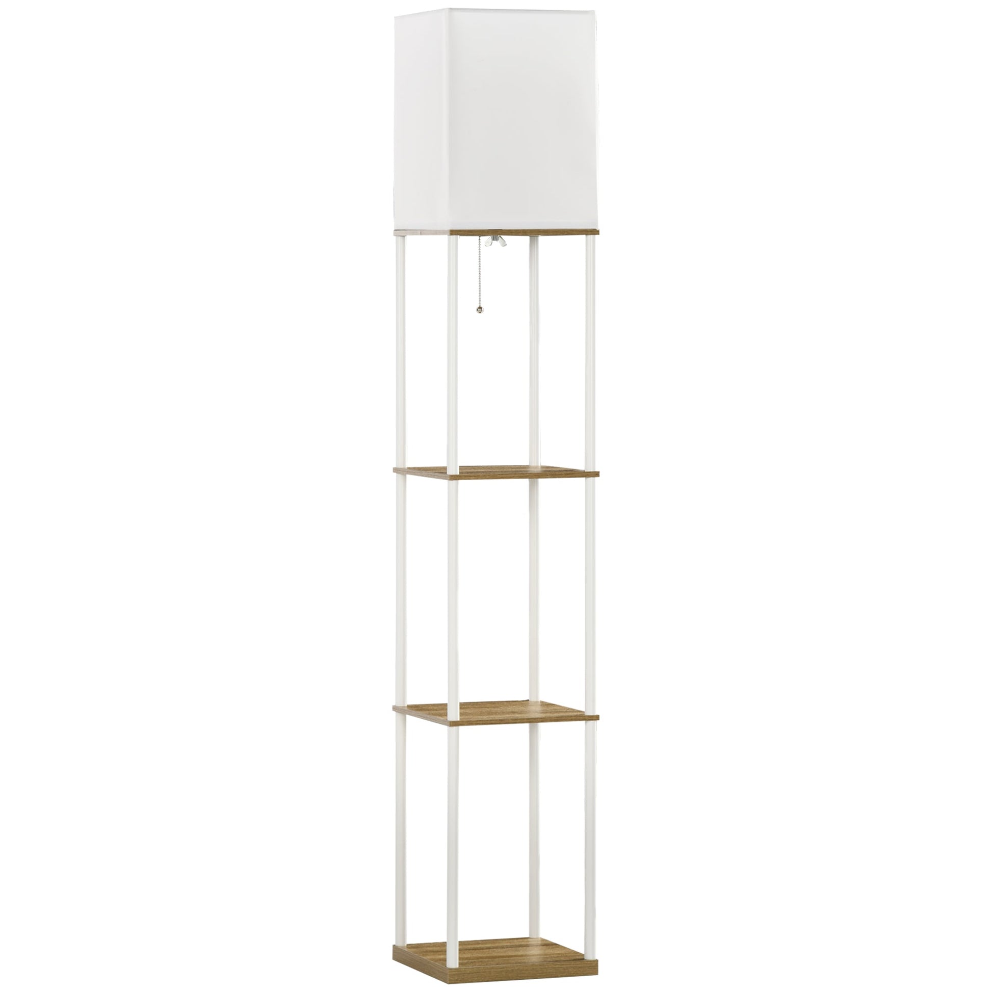 Good lighting is key for any space - this HOMCOM floor lamp creates a beautiful mood whenever you want. A tall standing design, it features two shelves to create three storage areas: display and store books, decorations, photos and more to make your space personal. A top light with a fabric shade on the top illuminates, with the pull chain to turn on and off easily. A metal frame for a strong structure.
