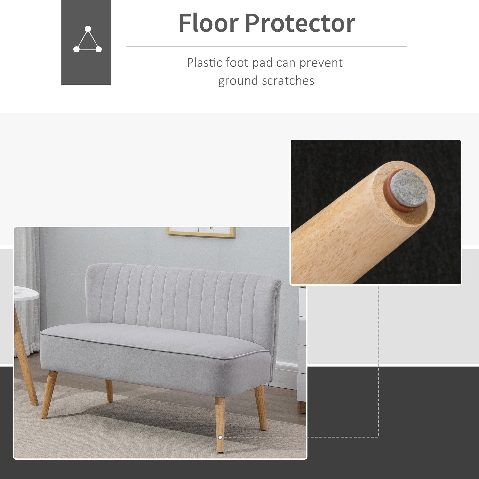 This minimalist two-seater sofa from HOMCOM is the perfect spot for the home and office. The extra-wide seat gives you plenty of room to sit comfortably. Solid wood structure with reinforced wood legs ensures stability and durability. Thick foam and soft velvet-feel fabric for comfort. A stylish addition you'll love bringing into your home and beyond.