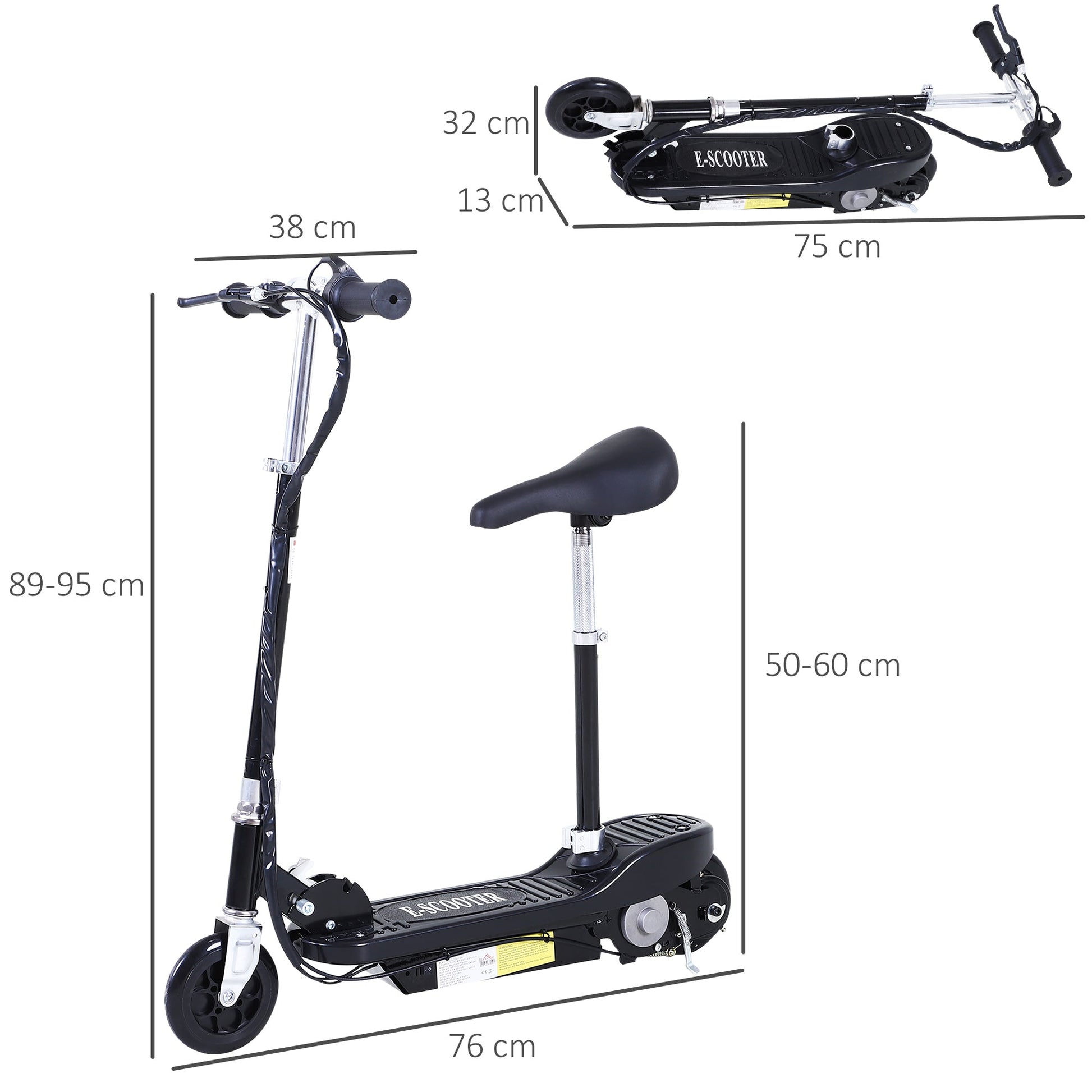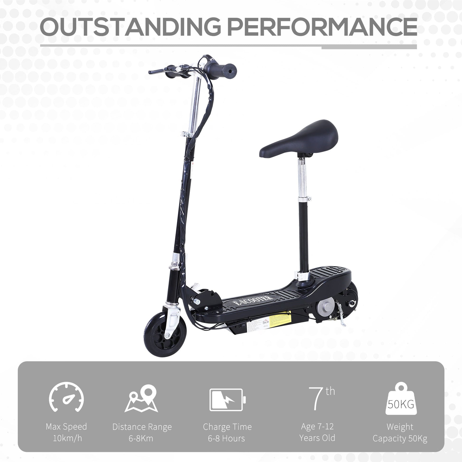 HOMCOM Powered E-Scooter Ride-On, with Brakes, Adjustable Seat, Adjustable Handlebars, Black