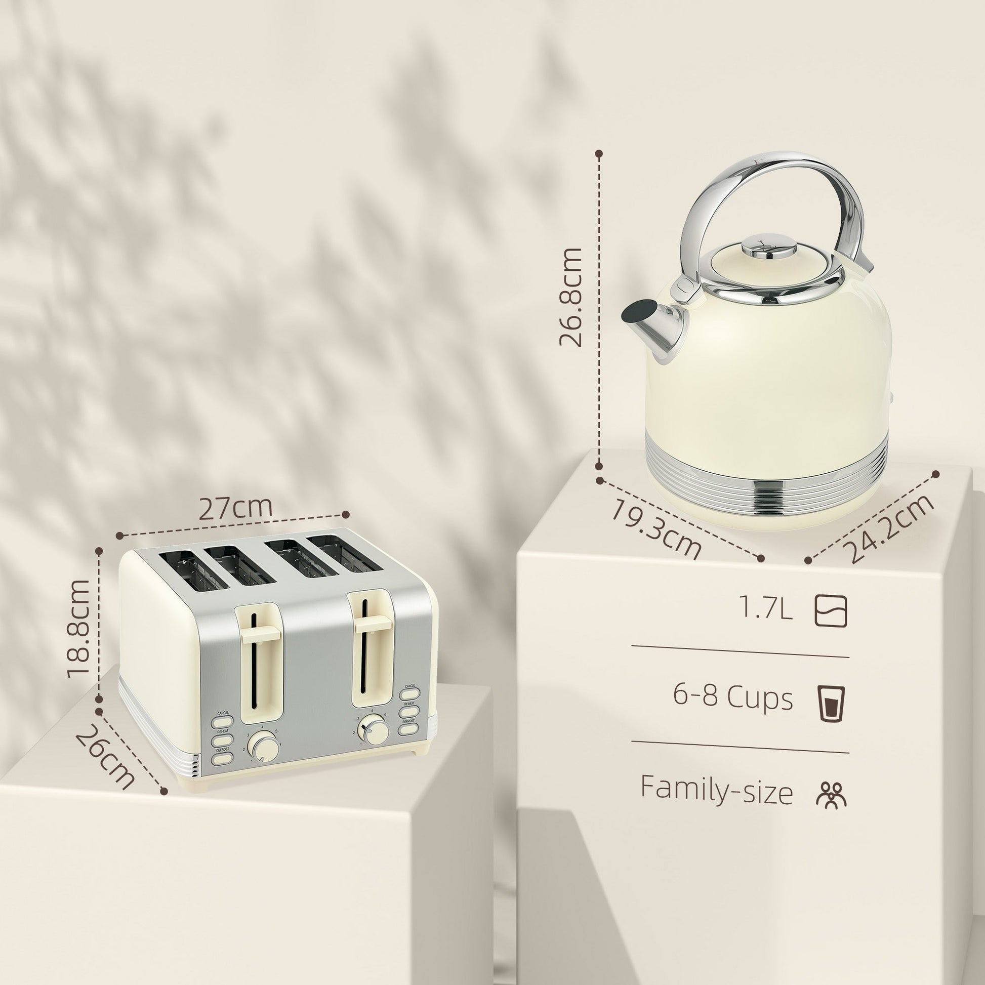 HOMCOM Polished Stainless Steel Kettle and Toaster Set - Cream