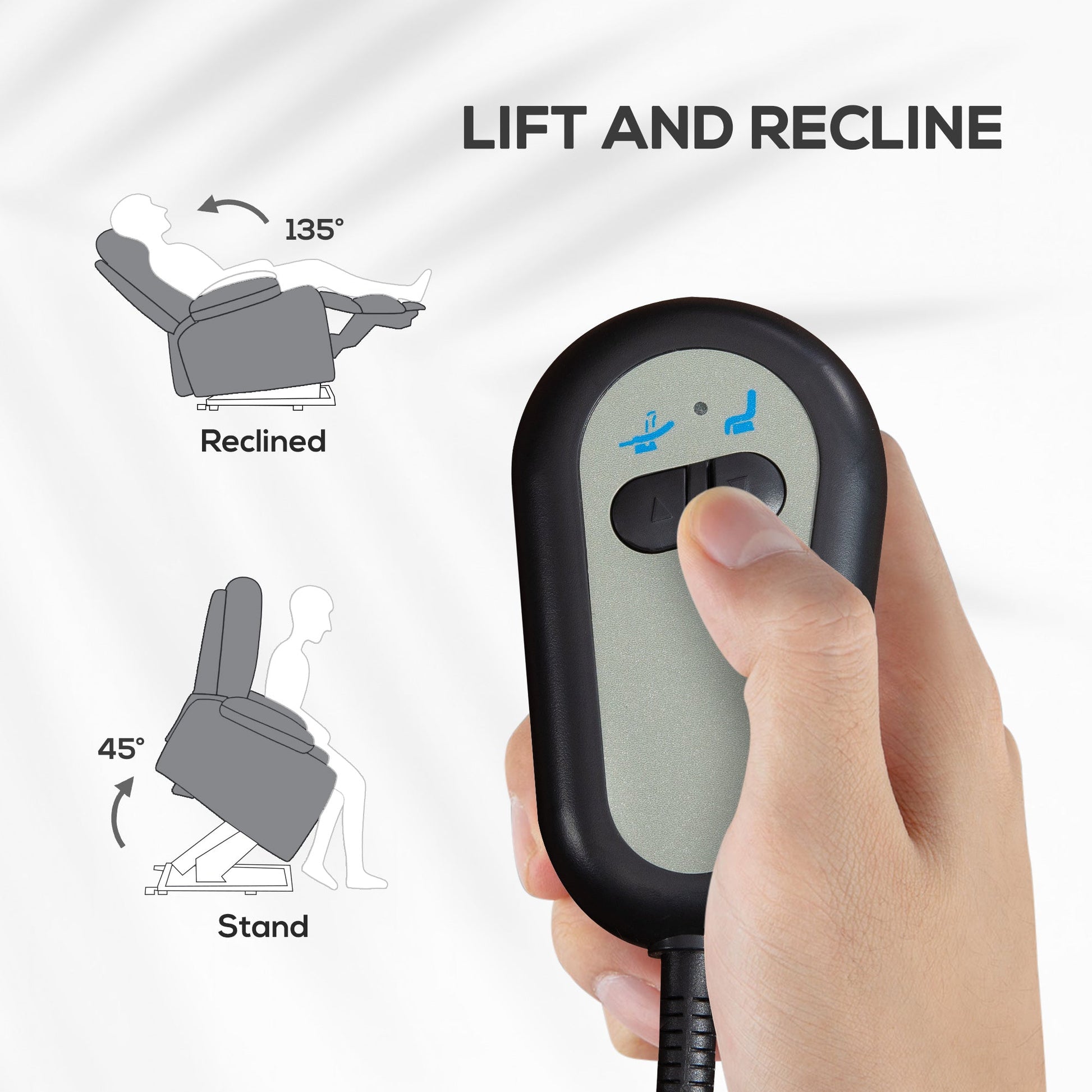 Bring assistance into your life whilst keeping your independence: look to this HOMCOM lift-up armchair. Steel forms the frame for a strong structure which supports up to 200 kg. Thickly padded all over to keep you comfortable, it features a 135 reclining back and footrest: control them with the remote to set chair in a position you want. The gentle lifting angle makes it easy to sit down and get out of the chair. Finished with smooth linen-look upholstery.
