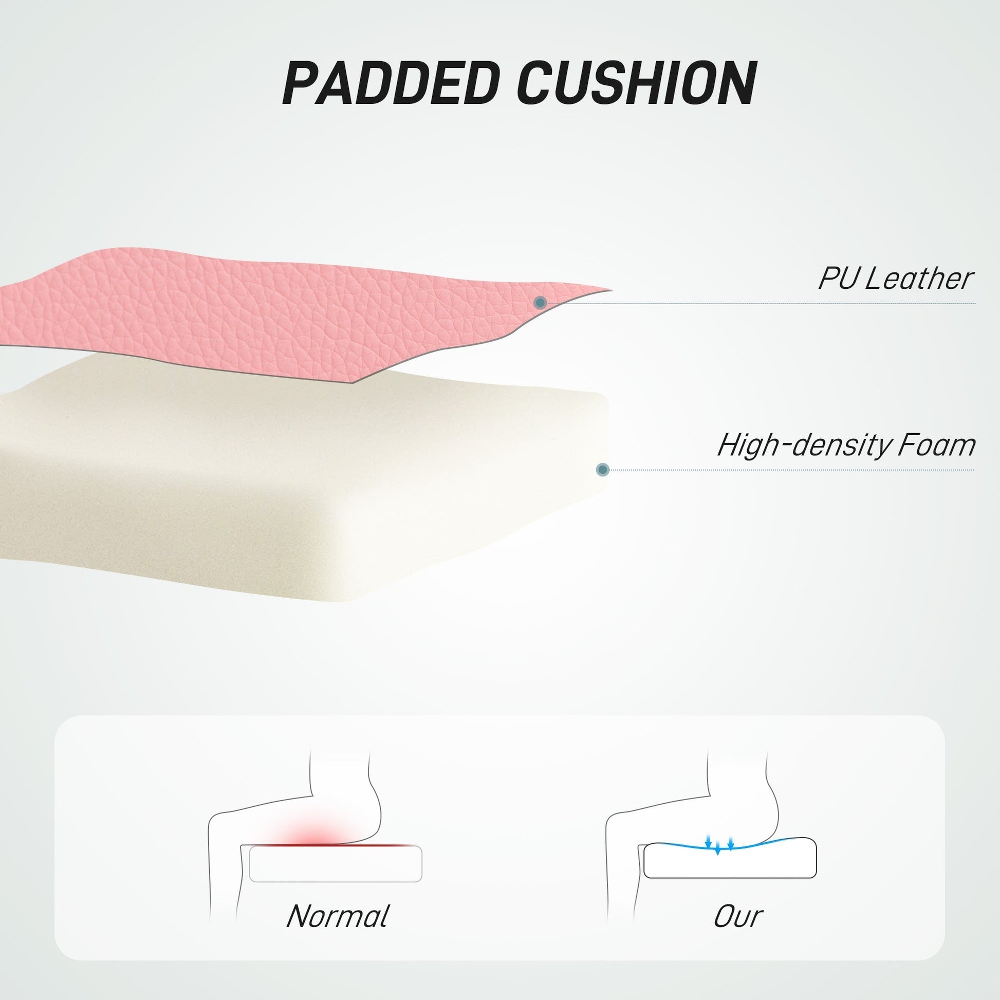 HOMCOM PU Leather Armless Office Chair, Modern Vanity Computer Swivel Chair with Rolling Wheels and Adjustable Height for Home Study, Bedroom, Pink
