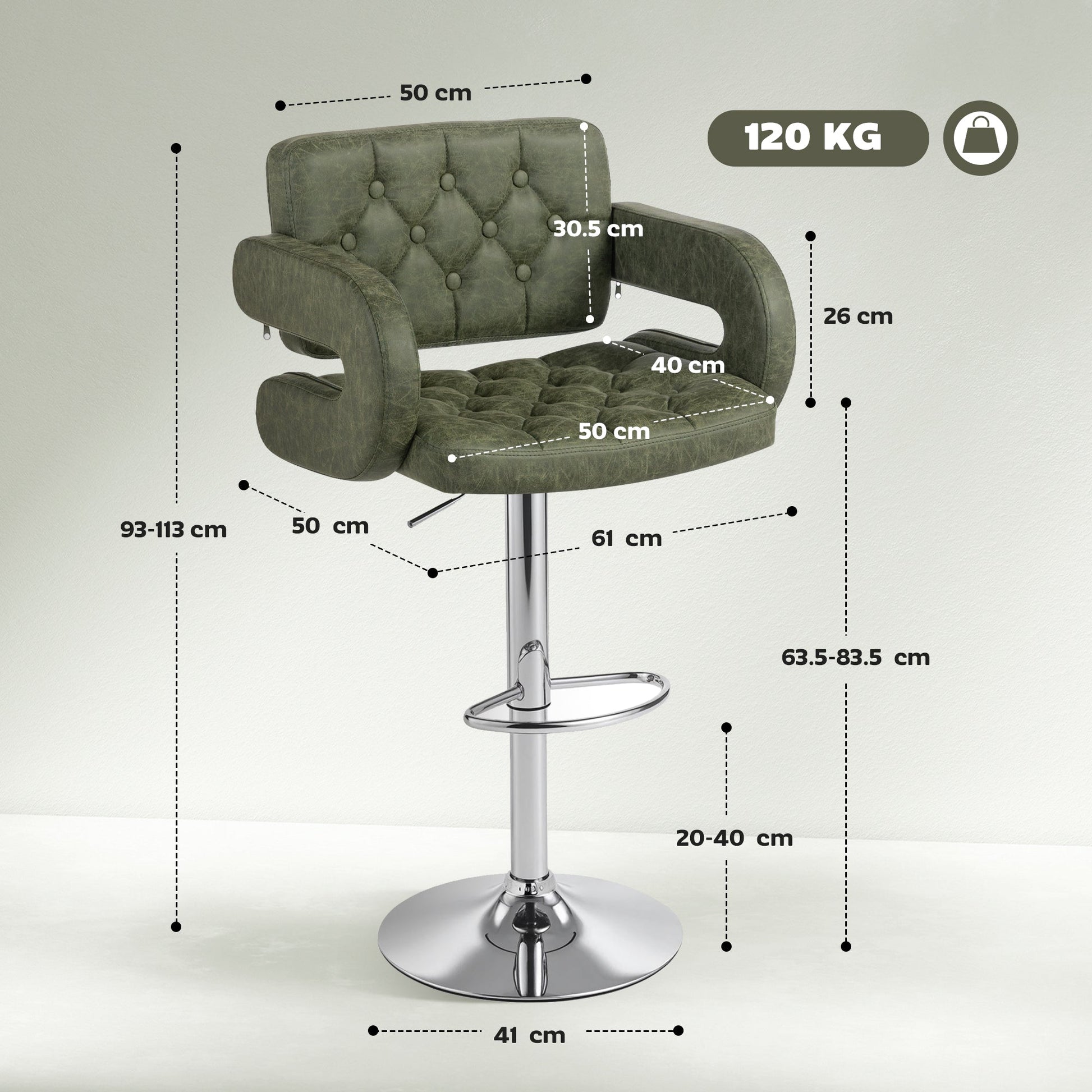 HOMCOM PU Leather Upholstered Swivel Bar Stool, Height Adjustable with Back, Armrest, Footrest, Green