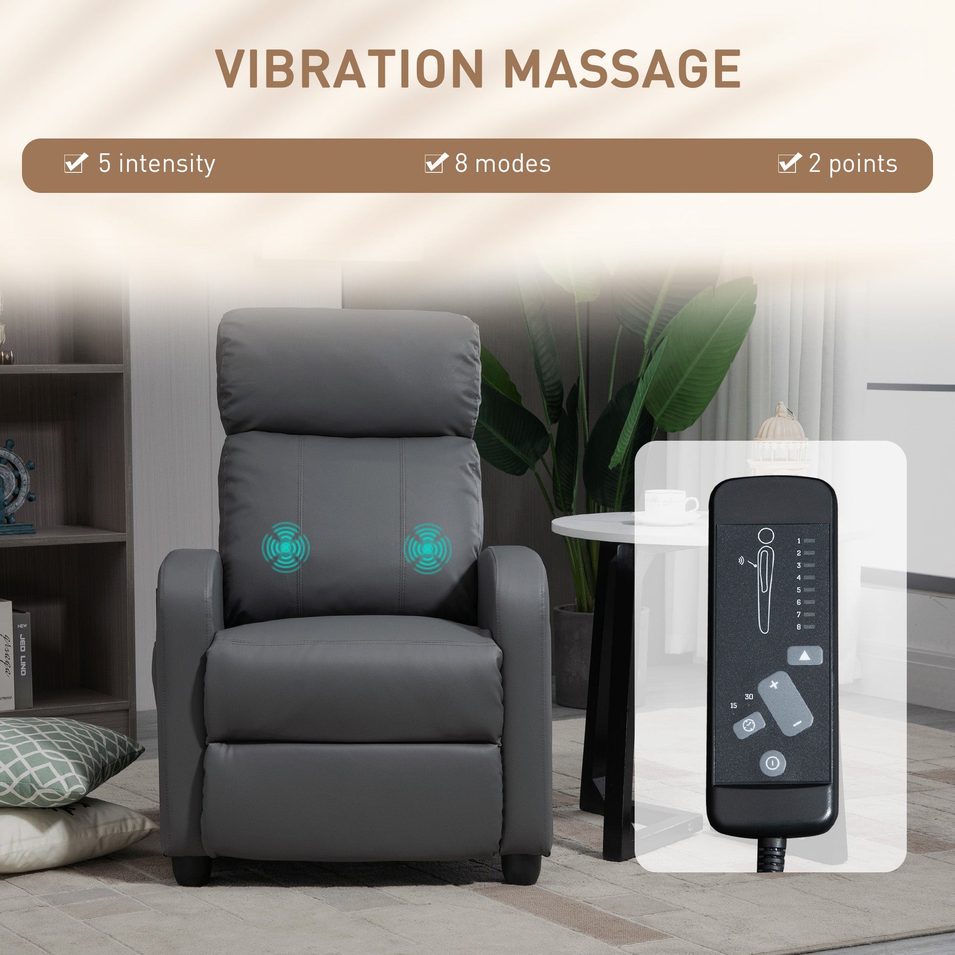 HOMCOM Recliner Armchair, Massage Faux Leather Push Back Reclining Chair with Adjustable Leg Rest, Side Pocket, for Home Living Room Theatre, Grey