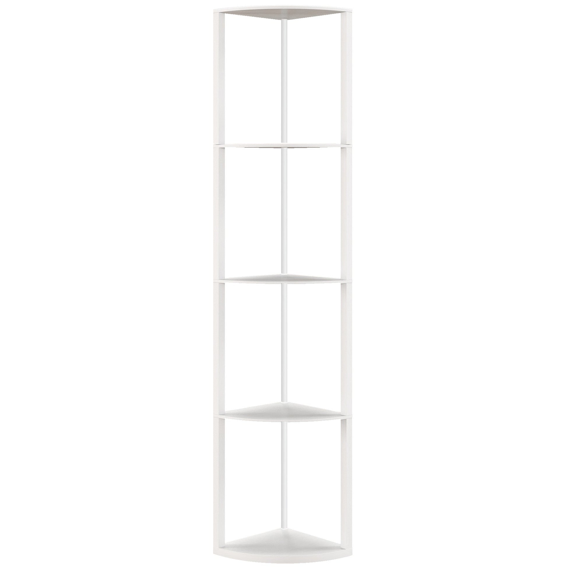 HOMCOM RGB LED Floor Lamp with Shelves, 5-Tier Dimmable Standing Lamp with Adjustable Brightness and Remote Control, Modern Corner Display Shelf Unit for Living Room Bedroom Office, White