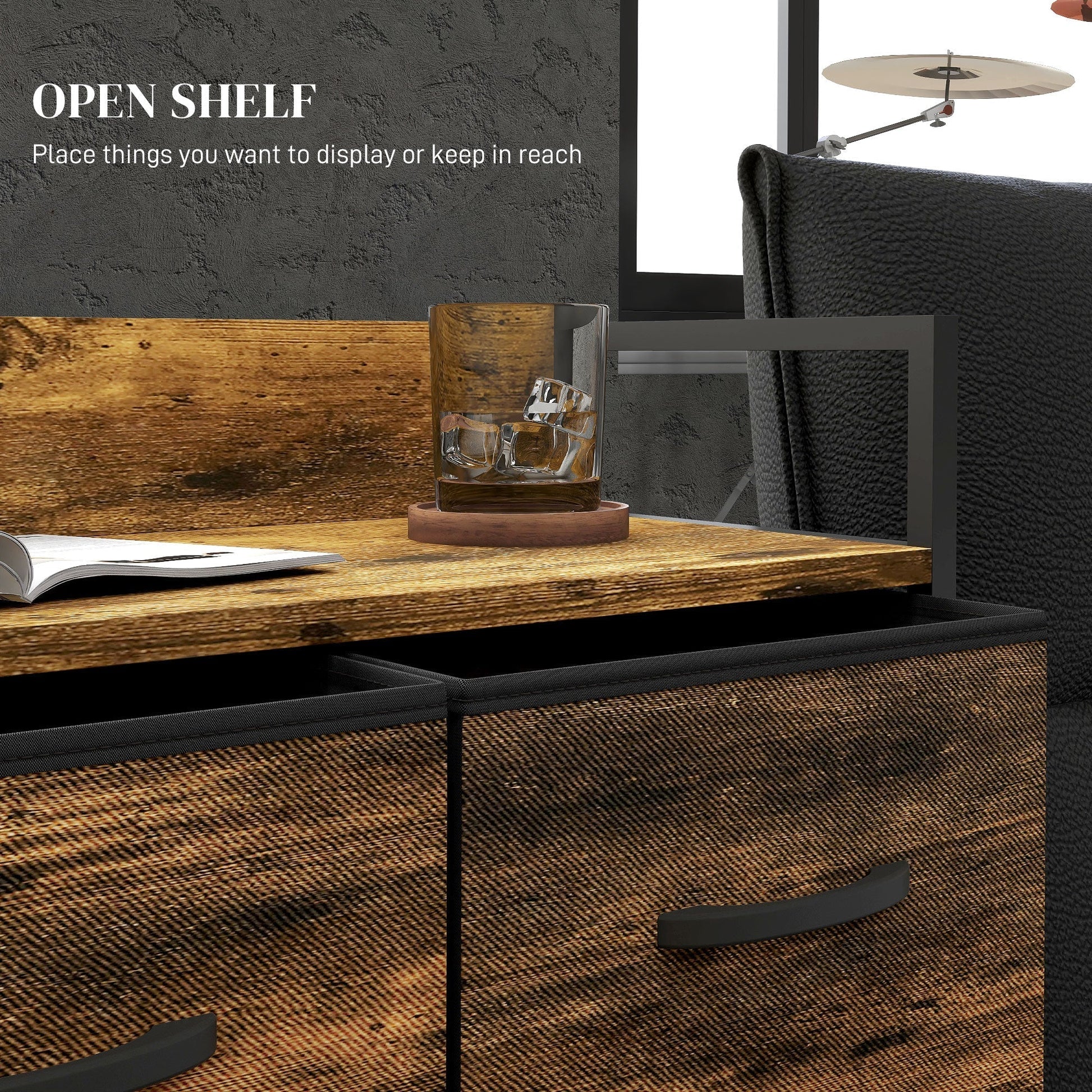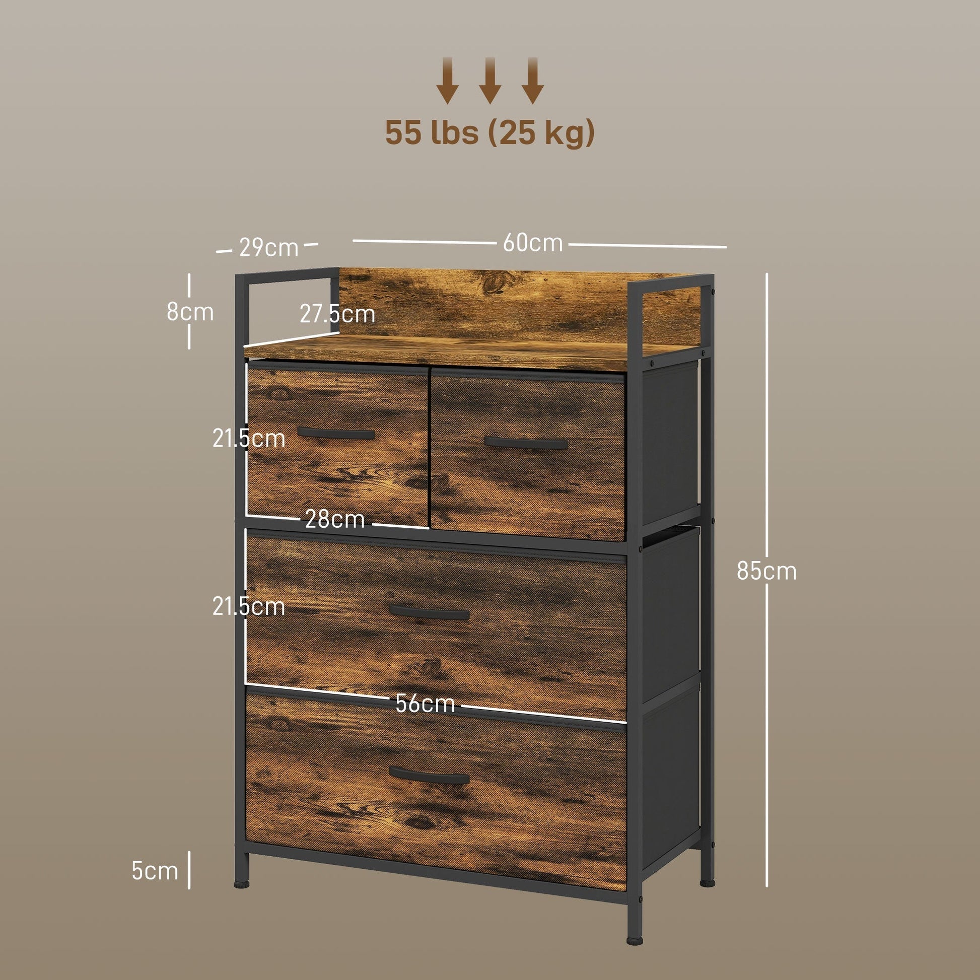 HOMCOM Rustic Chest of Four Fabric Drawers - Rustic Brown