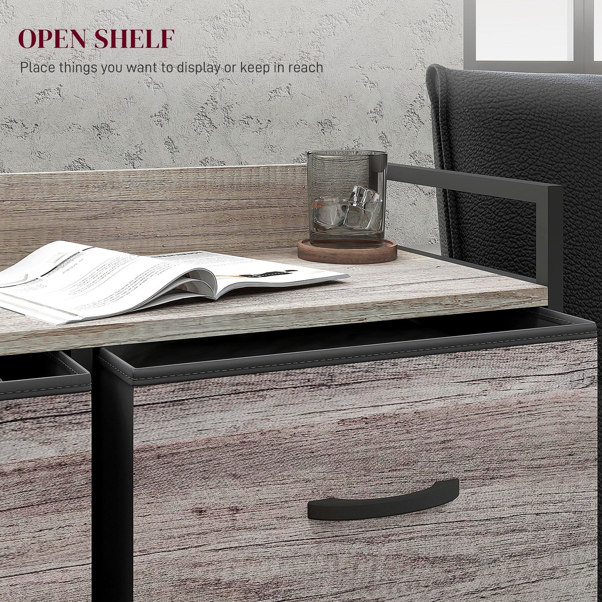 HOMCOM Rustic Chest of Six Fabric Drawers - Grey Wood Effect