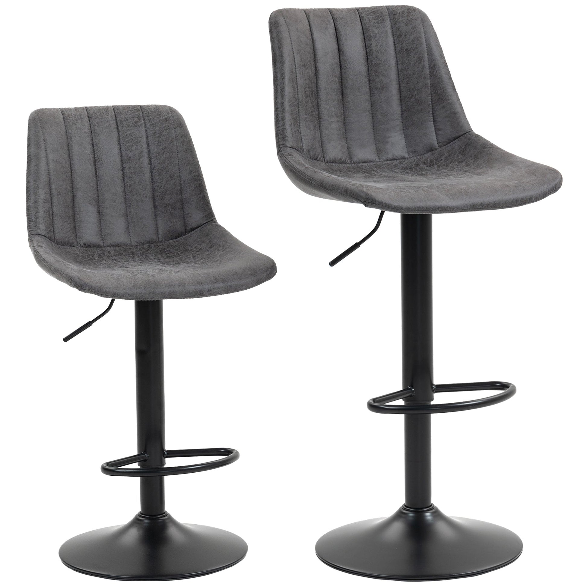 HOMCOM Set of 2 Leathaire Tub Bar Stools - Charcoal Grey