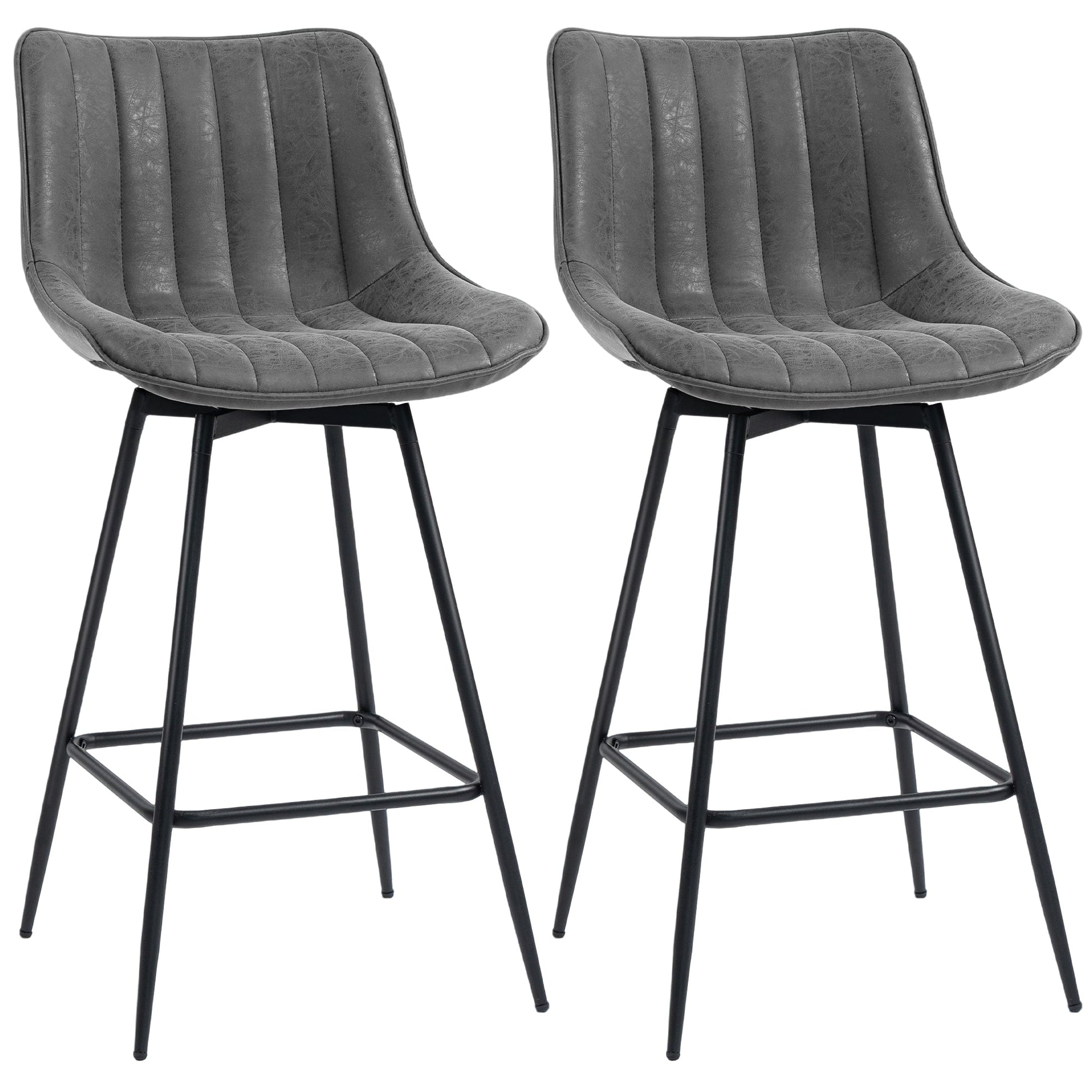HOMCOM Set of 2 PU Leather Swivel Bar Stools - Grey