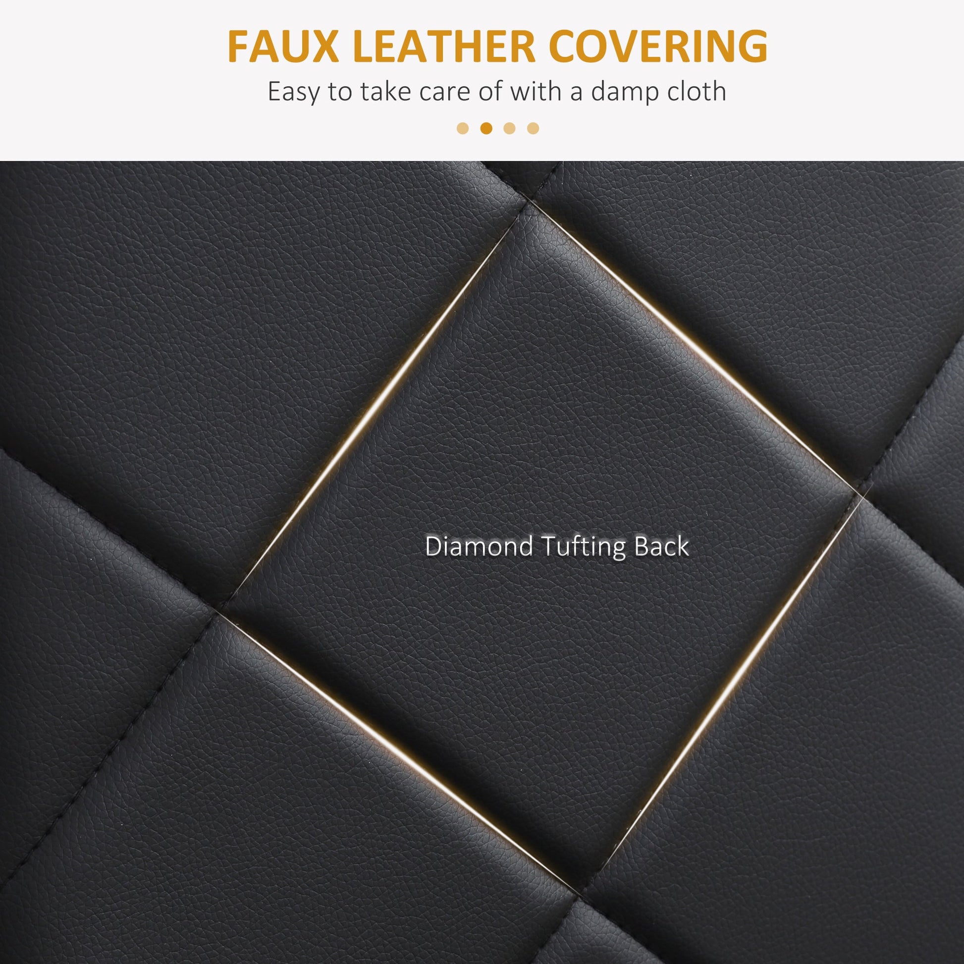 - Sleek faux leather upholstery, with diamond tufting for delicate style