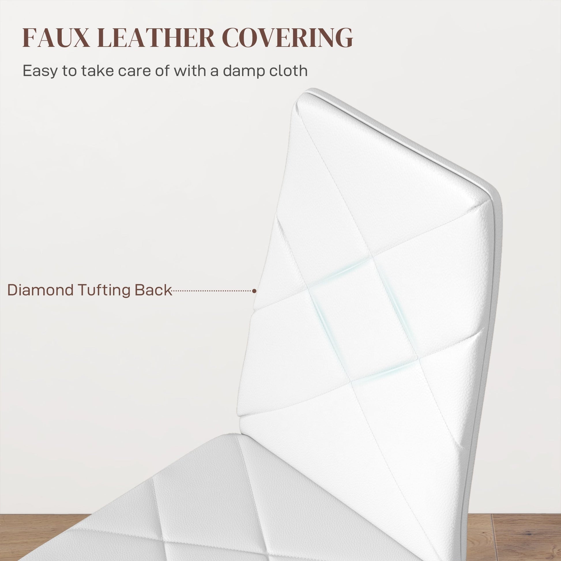 - Sleek faux leather upholstery, with diamond tufting for delicate style