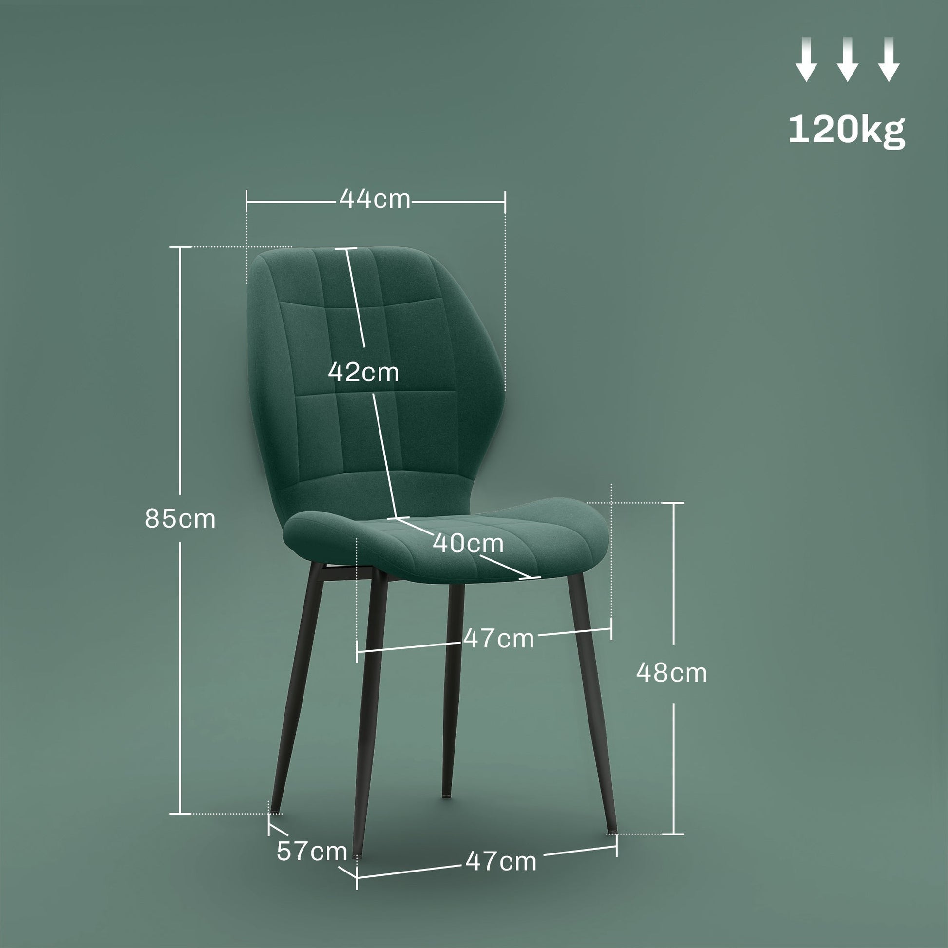 Blending a relaxed design with plenty of comfort, comes this HOMCOM set of four dining chairs. A relaxed tub shape, with no arms, 5cm thick padding and soft flannel upholstery make each accent chair a comfortable piece you'll love using. Look to the steel frames for strong support; these dining room chairs are finished with foot pads which gently protect your floor from marks.