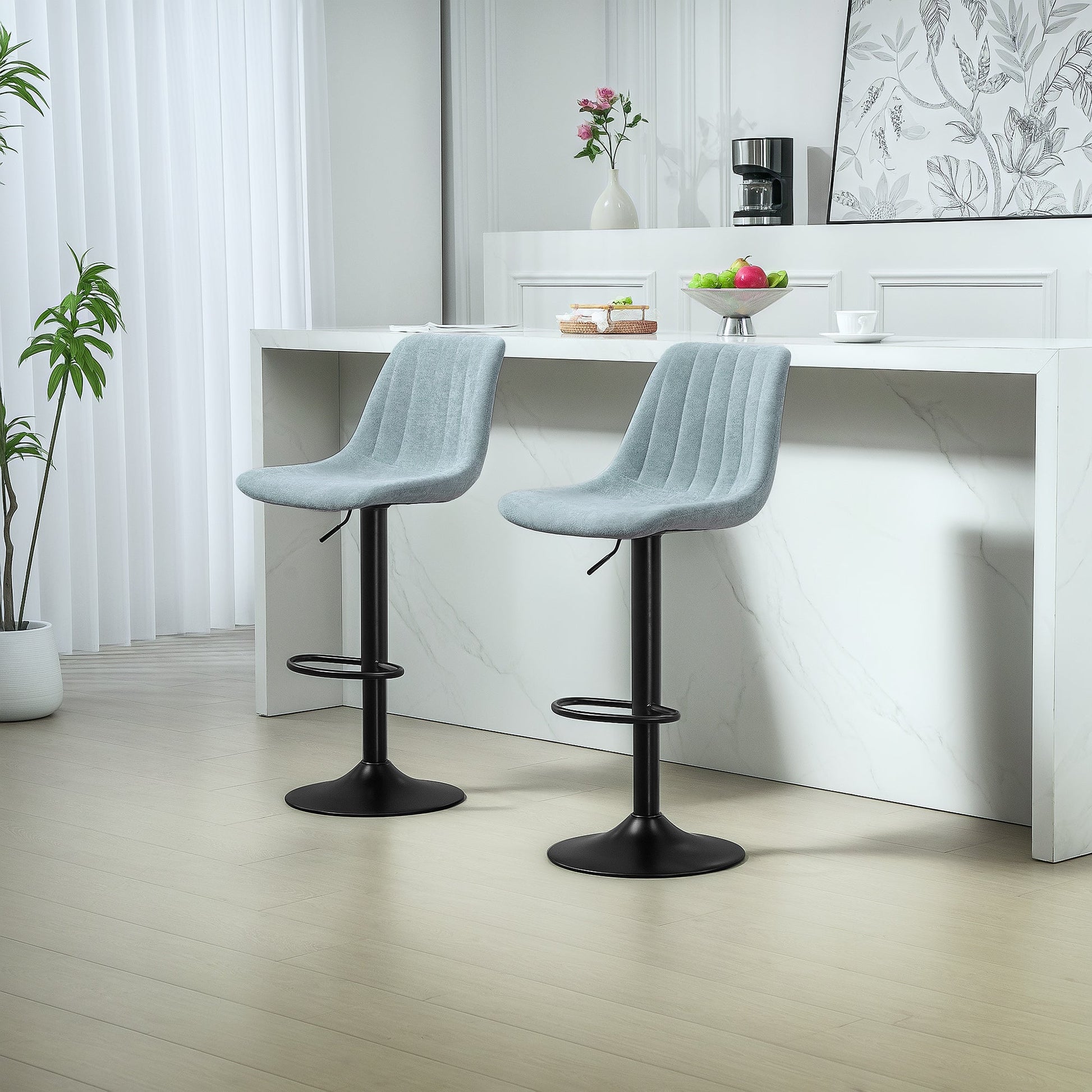 Both these HOMCOM breakfast bar stools are adjustable in height, with the 360 tub seat - easy and comfortable for your kitchen and beyond. The powder coated steel frame means a strong core., with a round base for balance; the rubber anti-slip ring gently protects the floor. Comes in a set of two kitchen stools for an easy matching look.