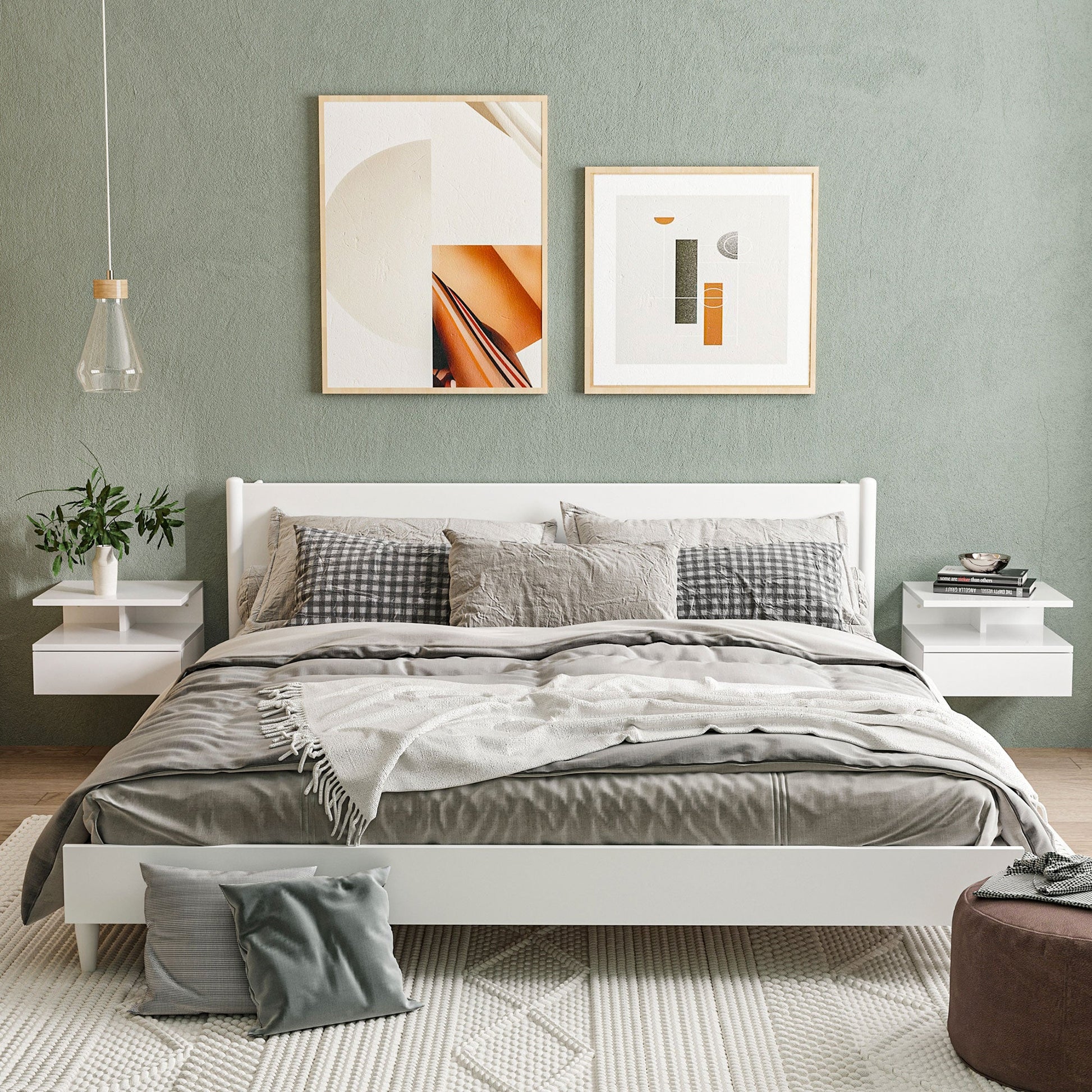 HOMCOM Set of Two Floating High Gloss Bedside Tables - White