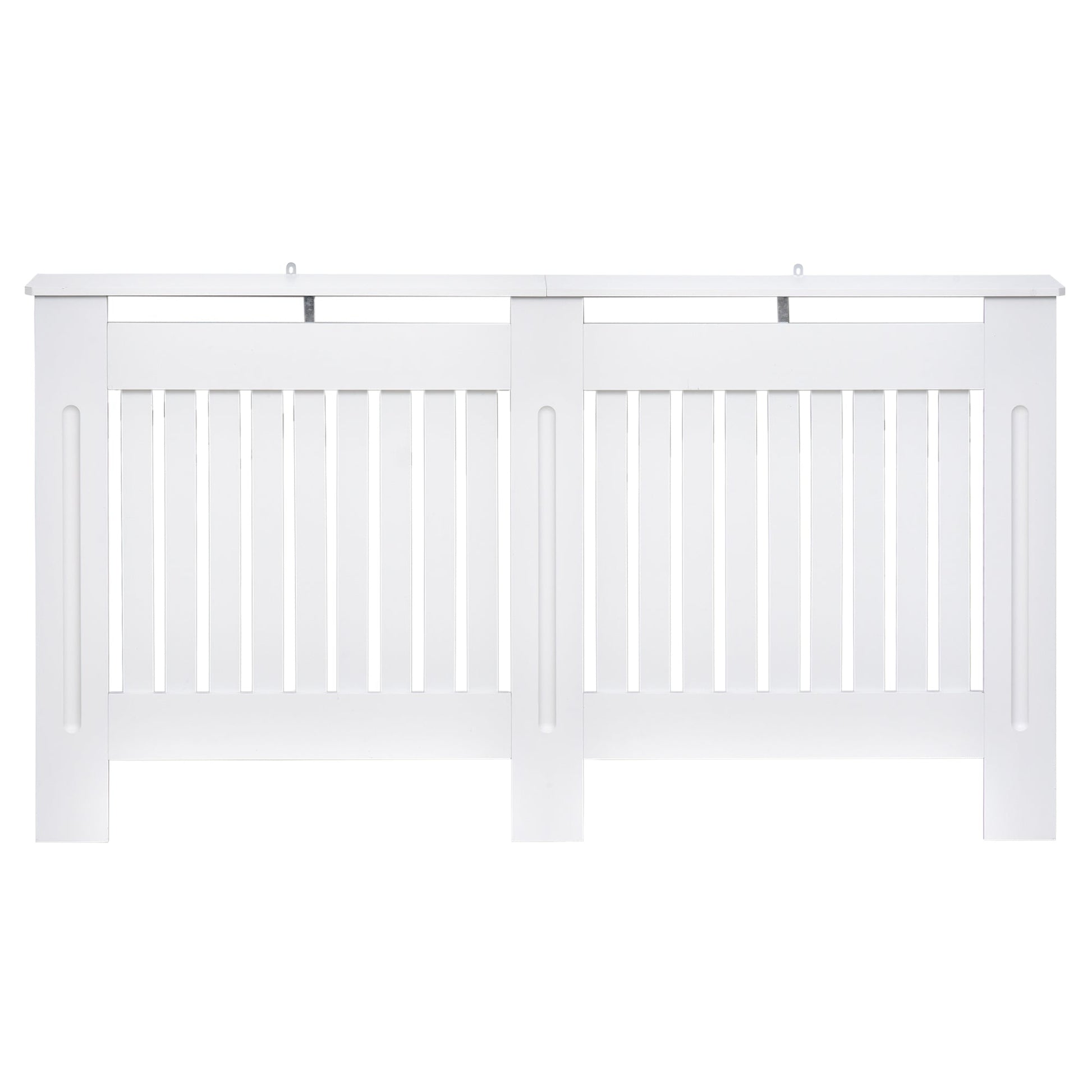 HOMCOM Slatted Radiator Cover Painted Cabinet MDF Lined Grill in White (152L x 19W x 81H cm)
