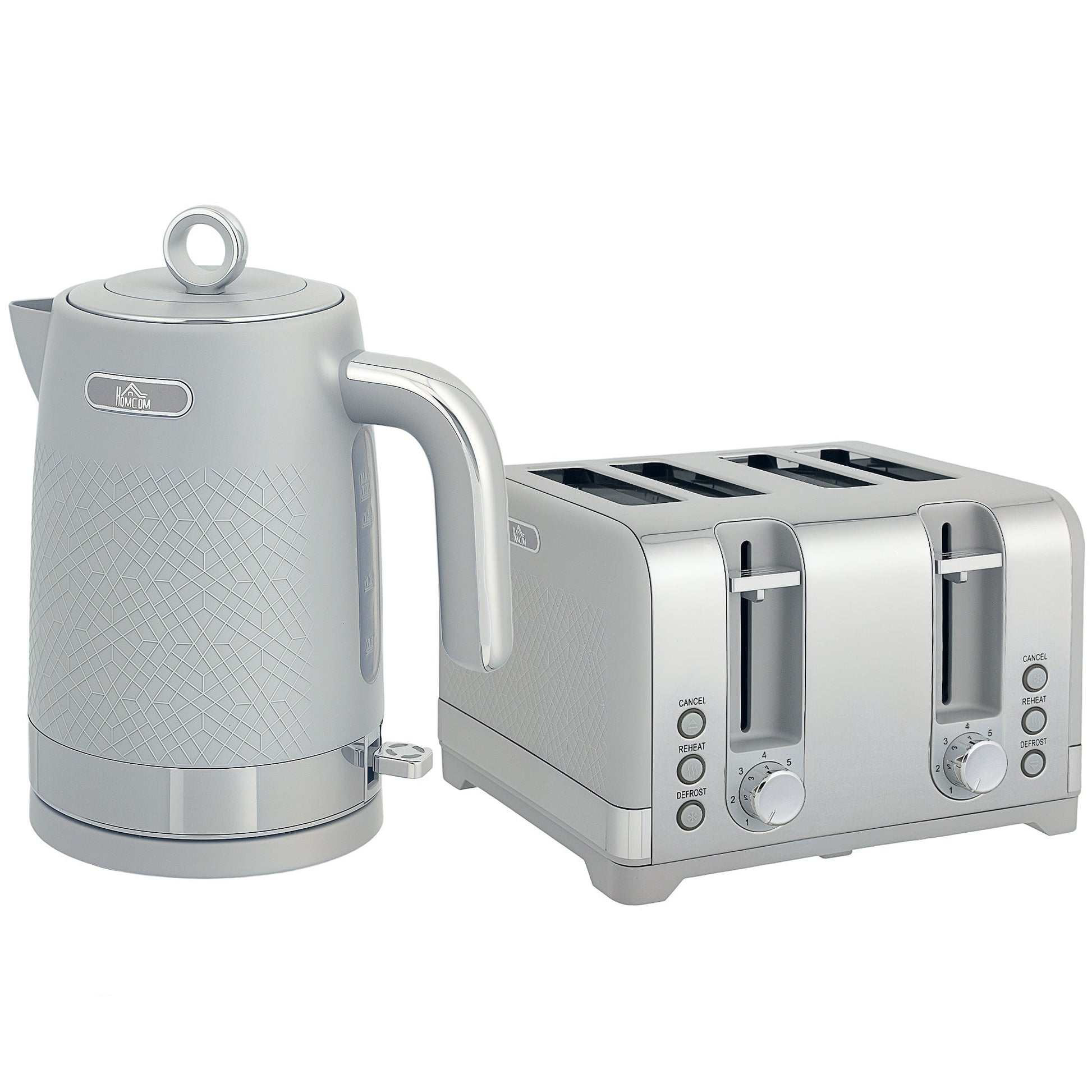 HOMCOM Sleek Textured Kettle and Four-Slice Toaster Set - Grey