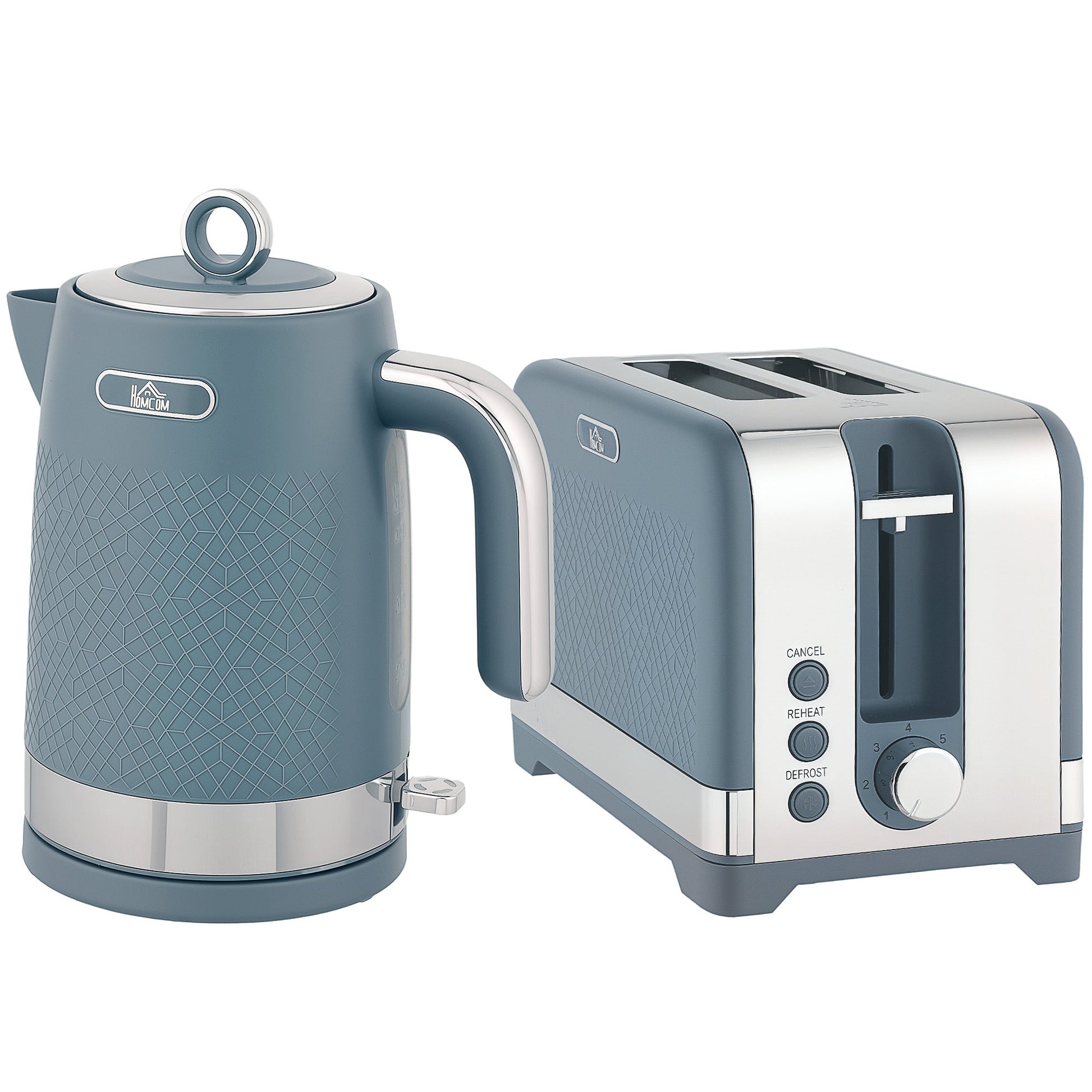 HOMCOM Sleek Textured Kettle and Toaster Set - Blue