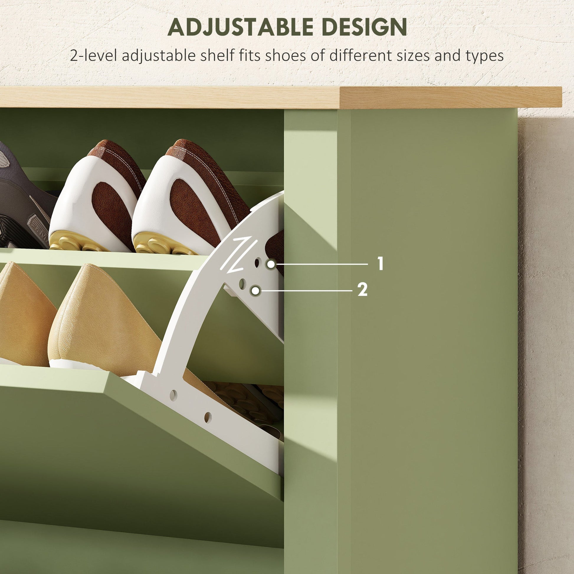 HOMCOM Slim Shoe Cabinet, Narrow Shoe Cupboard with 2 Flip Drawers, Adjustable Shelves for 12 Pairs of Shoes, Green