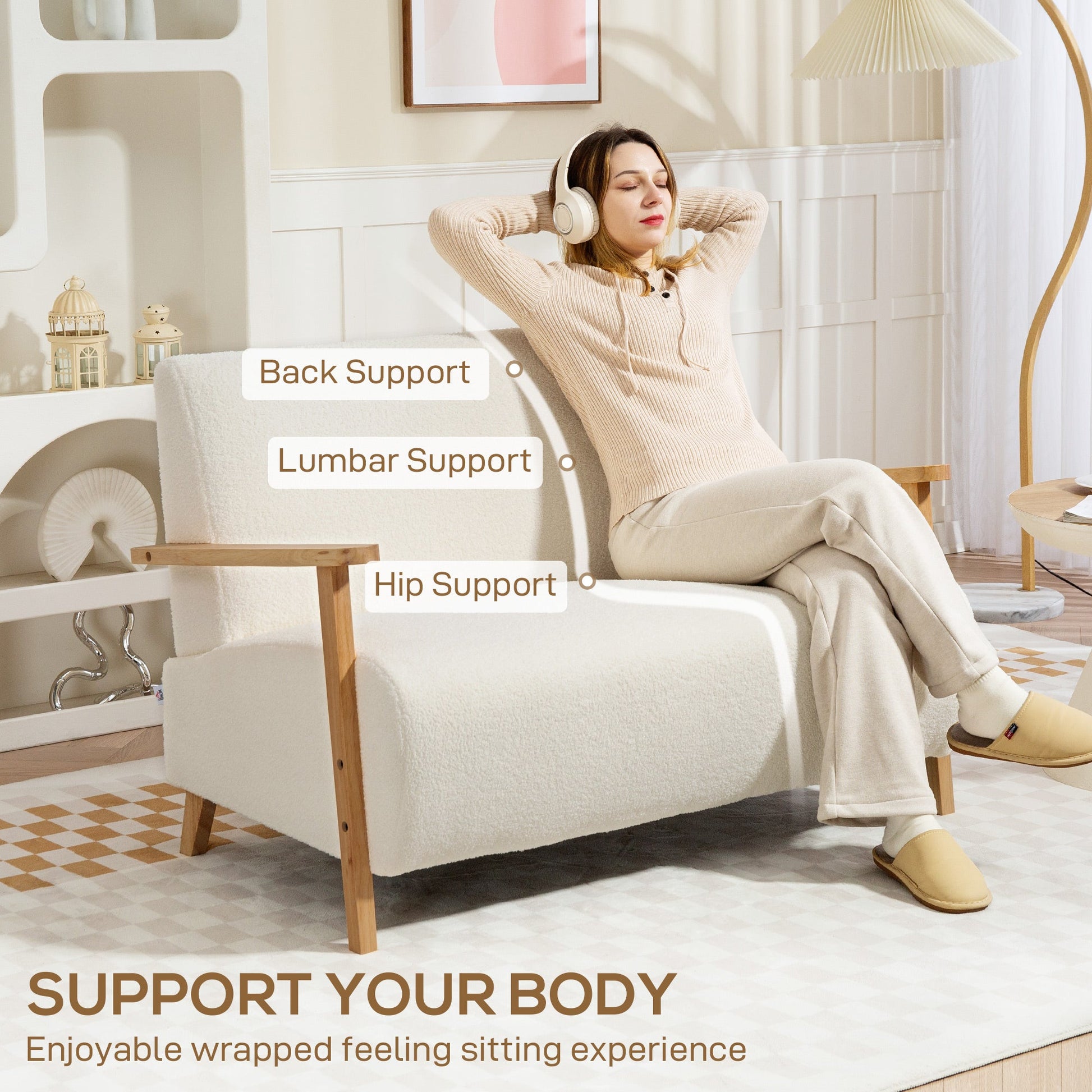 Discover the charm of our HOMCOM loveseat sofa, blending Nordic style with the cosiness of sherpa fabric. This small sofa features thick seat and back padding for great comfort, all while maintaining a compact footprint for snug spaces, suitable for small spaces. Rubber wood armrests and legs add a touch of elegance, making it a stylish addition to any living room or bedroom.