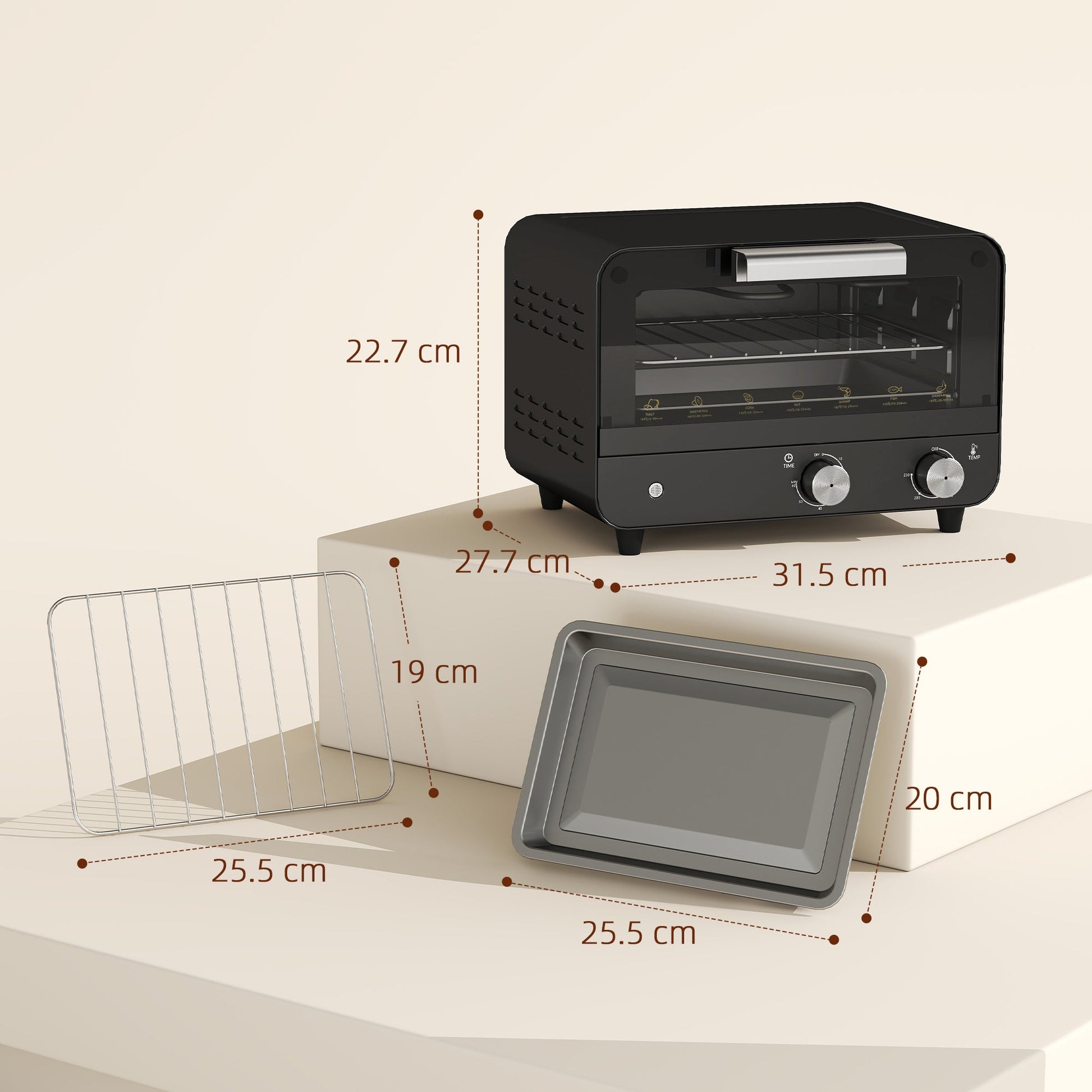 HOMCOM Small Toaster Oven, 12L Multifunction Mini Countertop Oven with Glass Door, Adjustable Temperature and Timer, Black