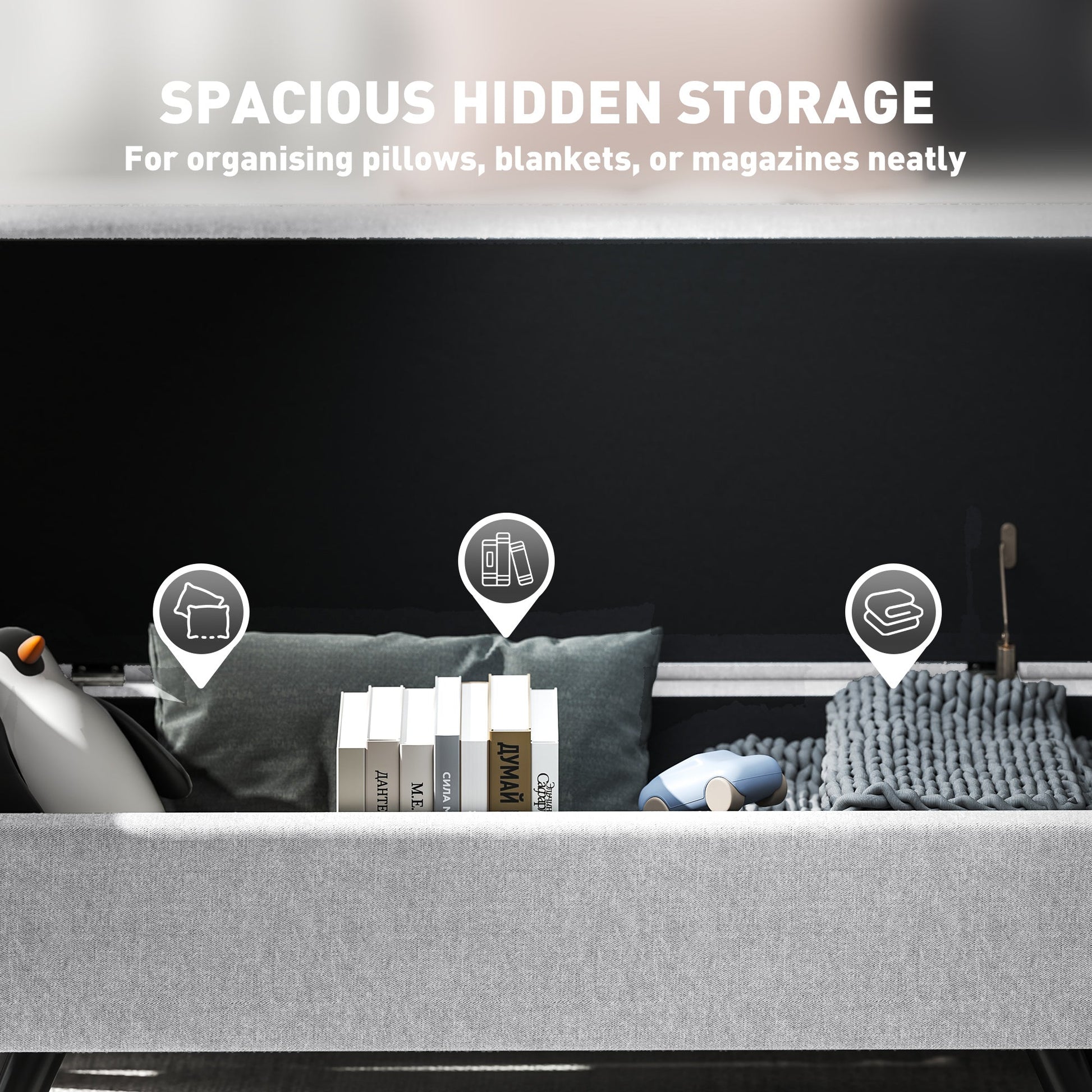 HOMCOM Storage Ottoman with Armrest, Upholstered Linen Storage Bench, Window Seat with Rubberwood Legs, Footstool for Bedroom Living Room, Hallway, Light Grey