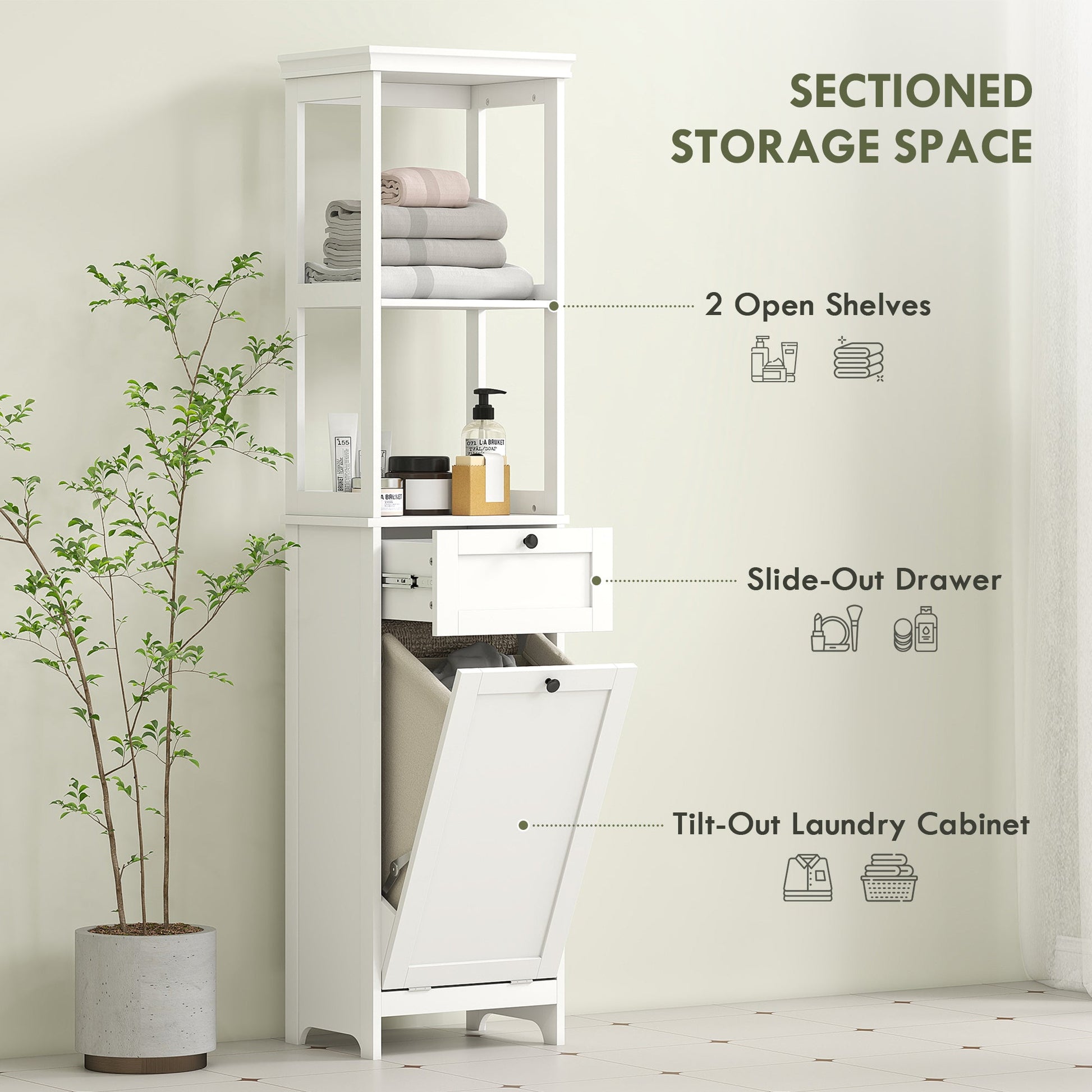 HOMCOM Tall Bathroom Cabinet, with Laundry Basket - White