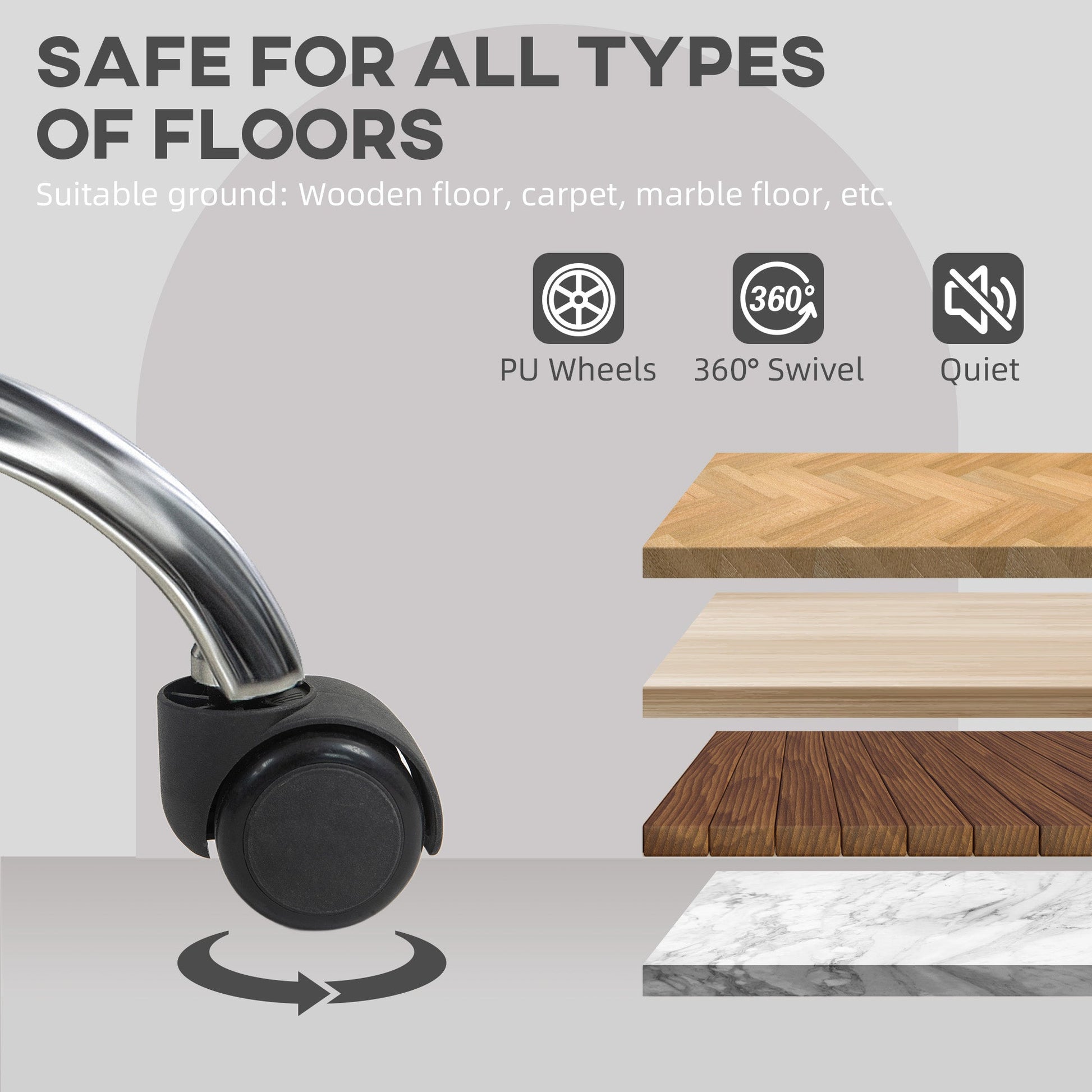 - Swivel seat moves with your body. Five wheels allow chair to move around on the floor