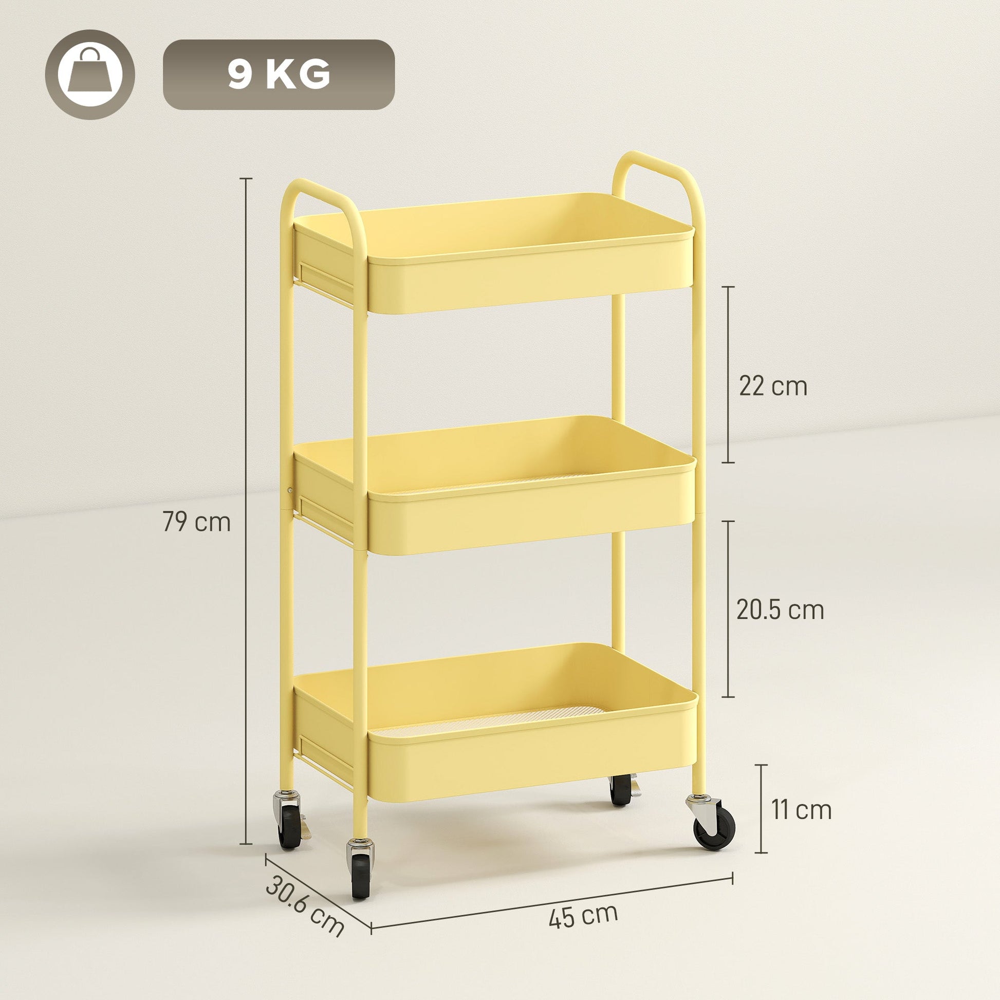 HOMCOM Three-Tier Steel Storage Trolley - Yellow