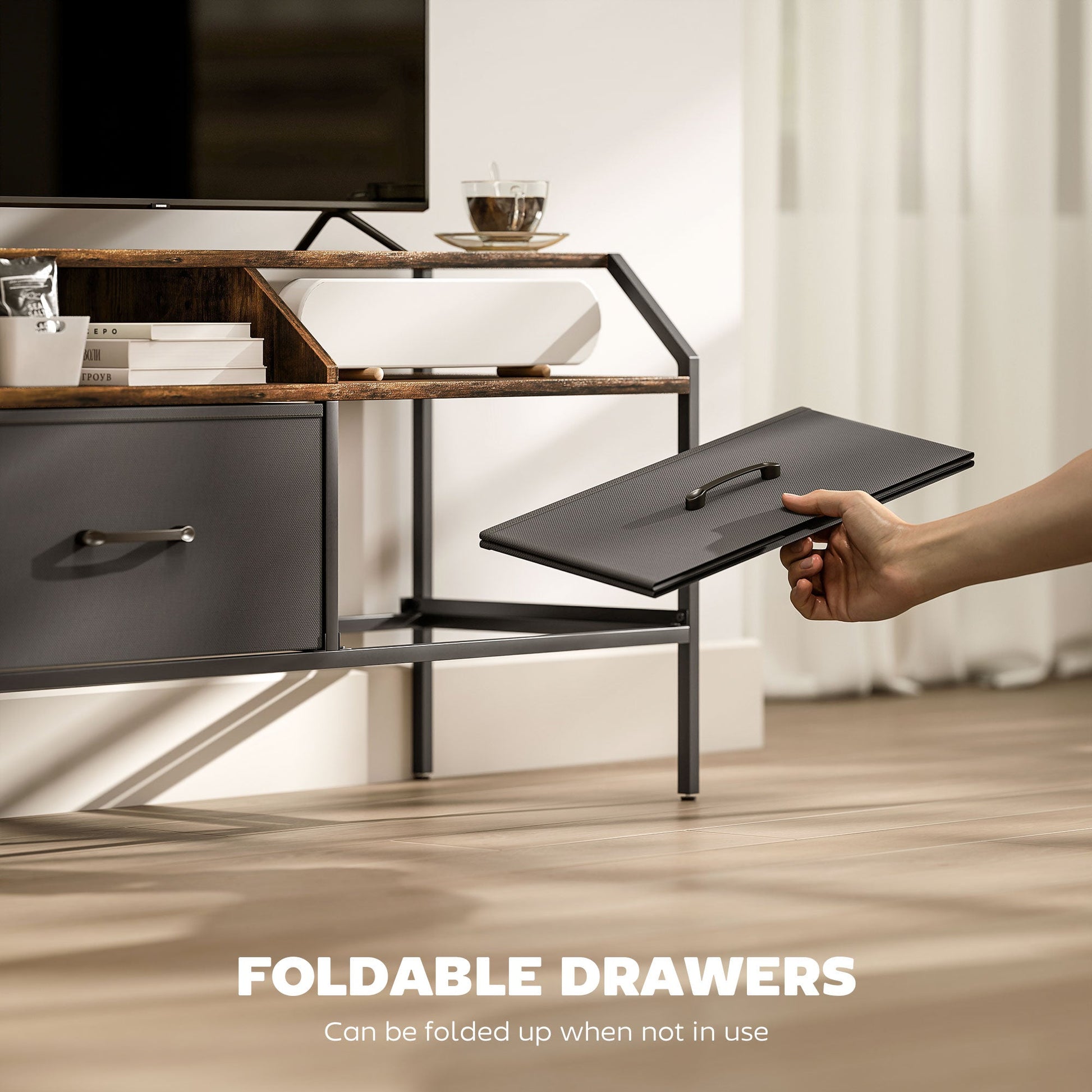 HOMCOM TV Stand Cabinet, TV Unit for 55-inch TVs with 2 Foldable Fabric Drawers, 5 Divided Side Pockets, Open Shelves, Console Table for Living Room, Bedroom, Entertainment Room, Rustic Brown