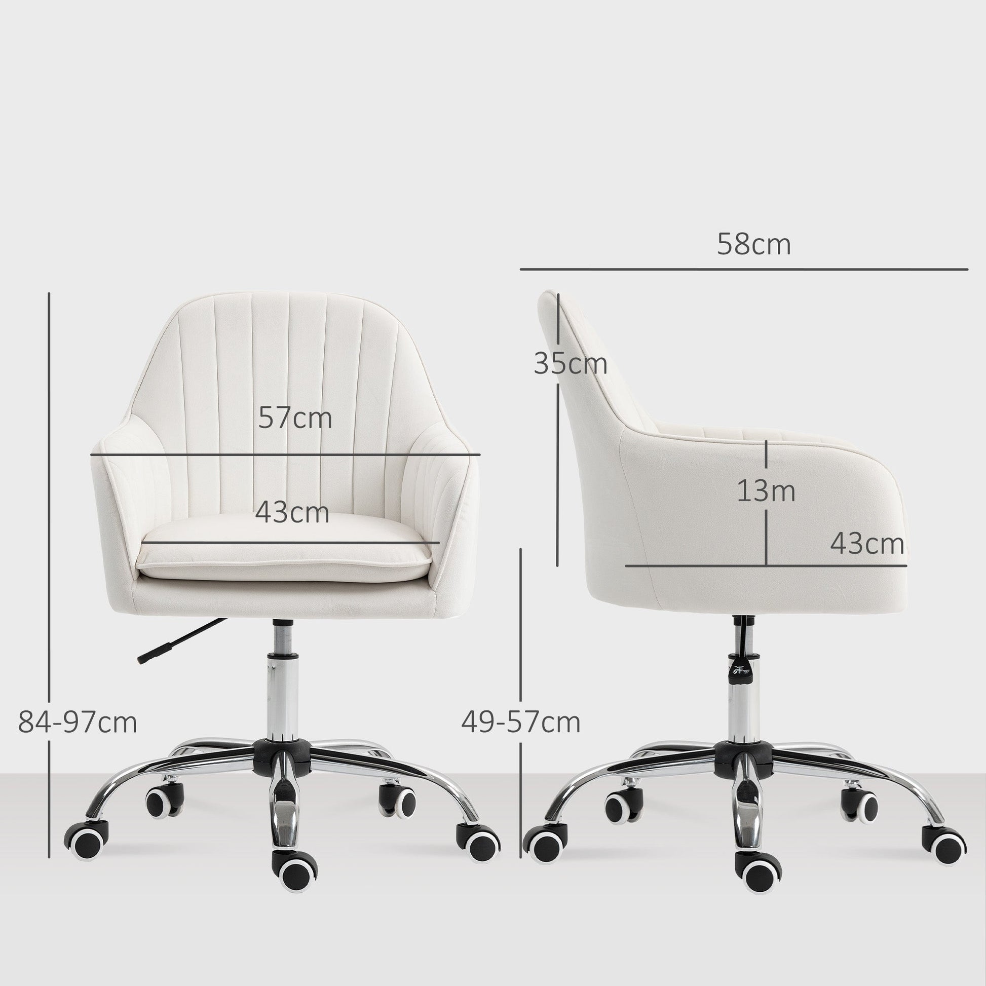 HOMCOM Velvet-Feel Office Chair with Adjustable Height and Wheels - Cream White