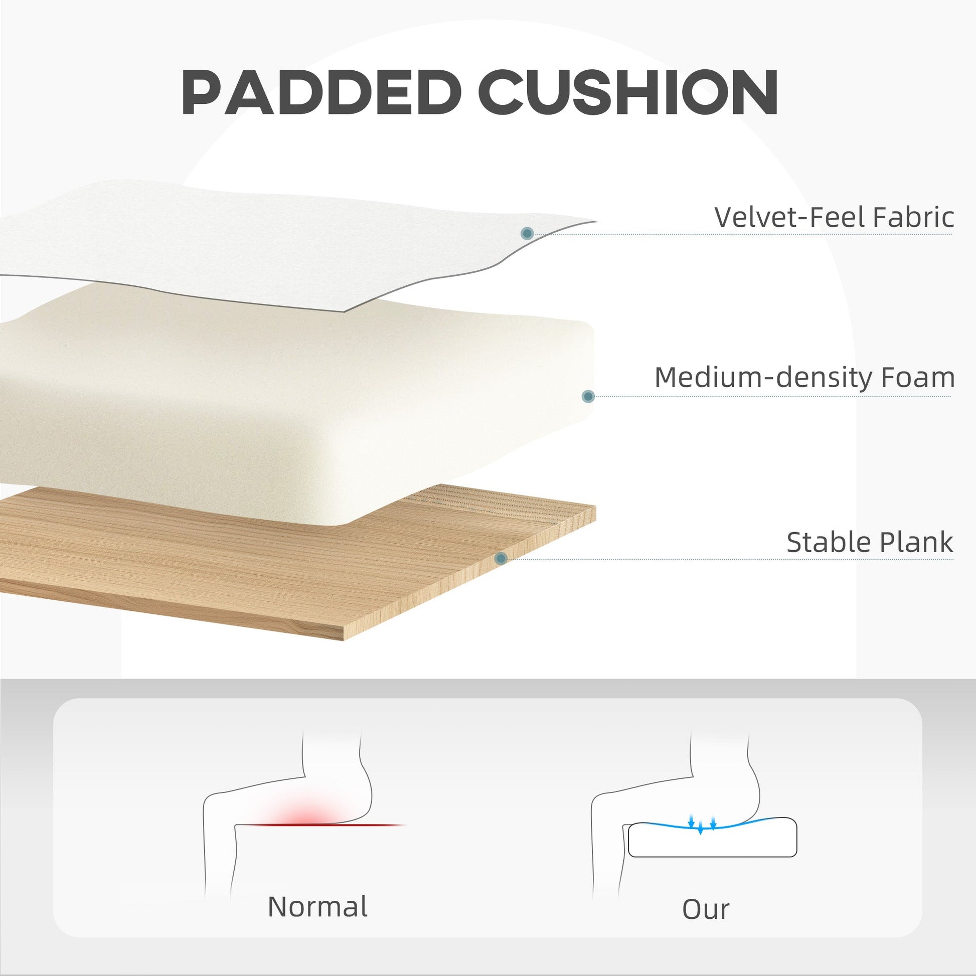 - Material: Velvet-feel fabric (100% Polyester), Foam, Steel, Multi-layered board