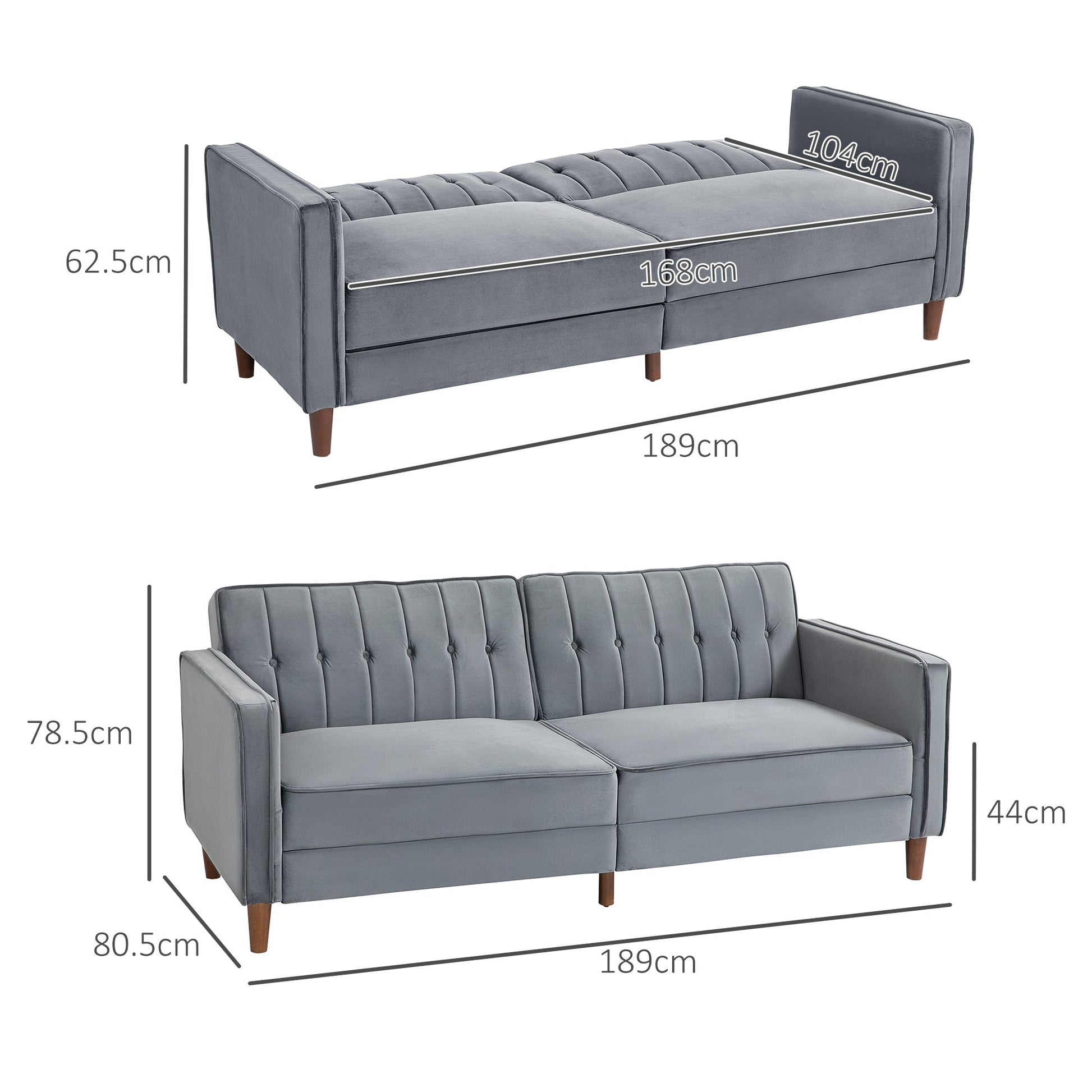 HOMCOM Velvet-Feel Three-Seater Sofa Bed - Dark Grey