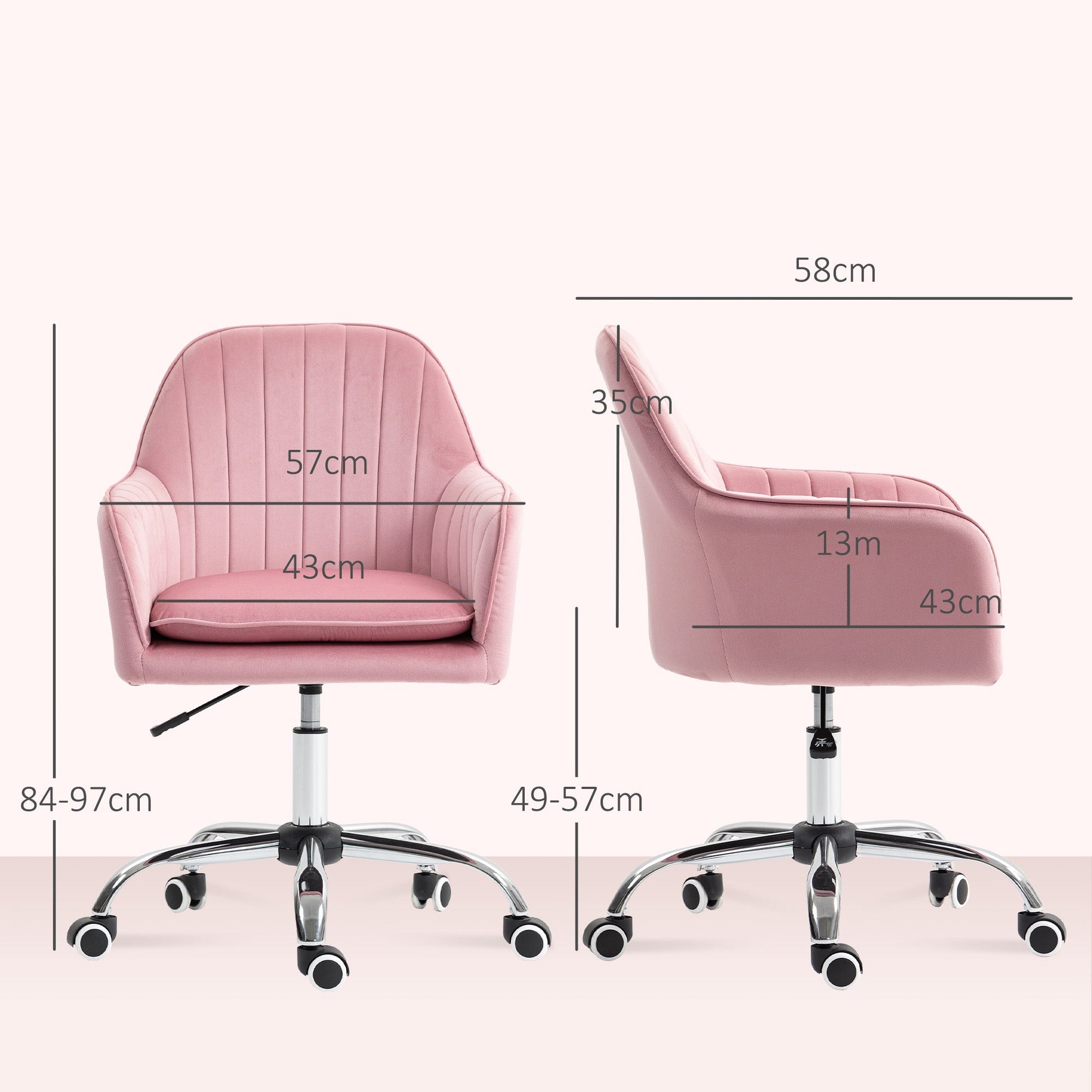 HOMCOM Velvet-Feel Tub Office Chair, with Seat Cushion - Dark Pink