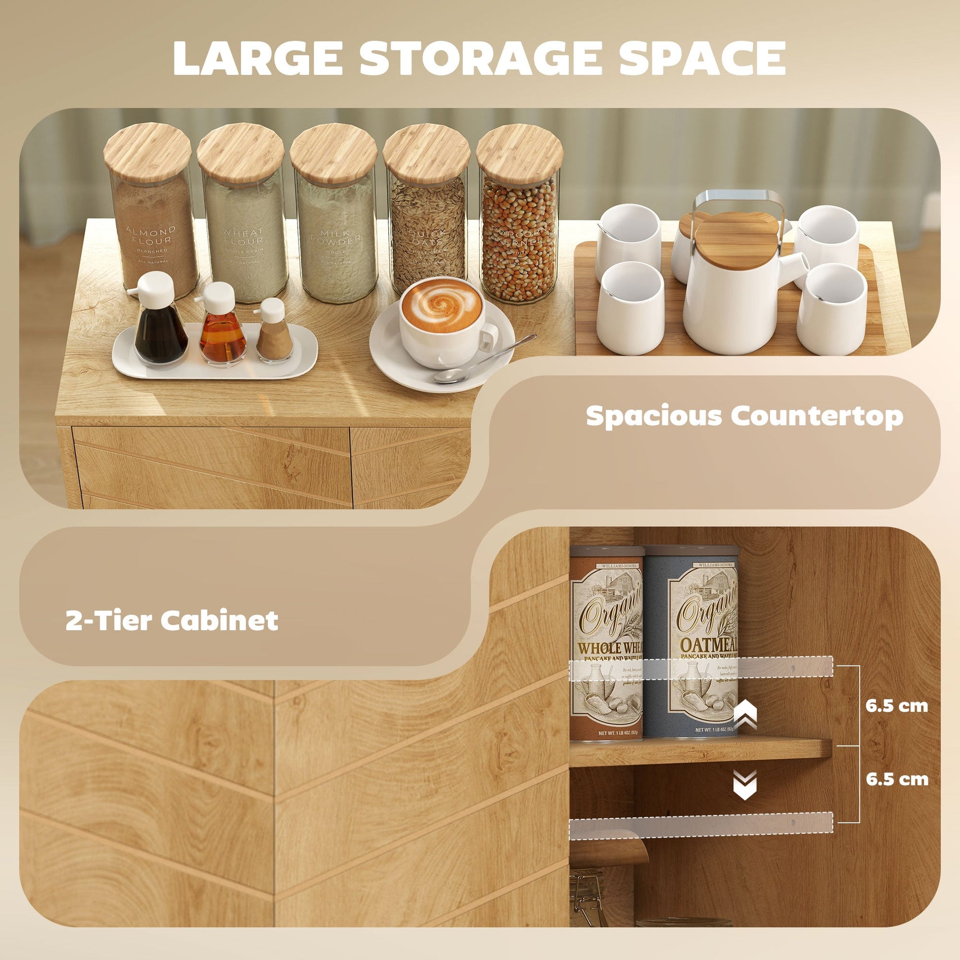 HOMCOM Vintage Sideboard with Chevron Doors and Pine Wood Legs for Living Room, Kitchen