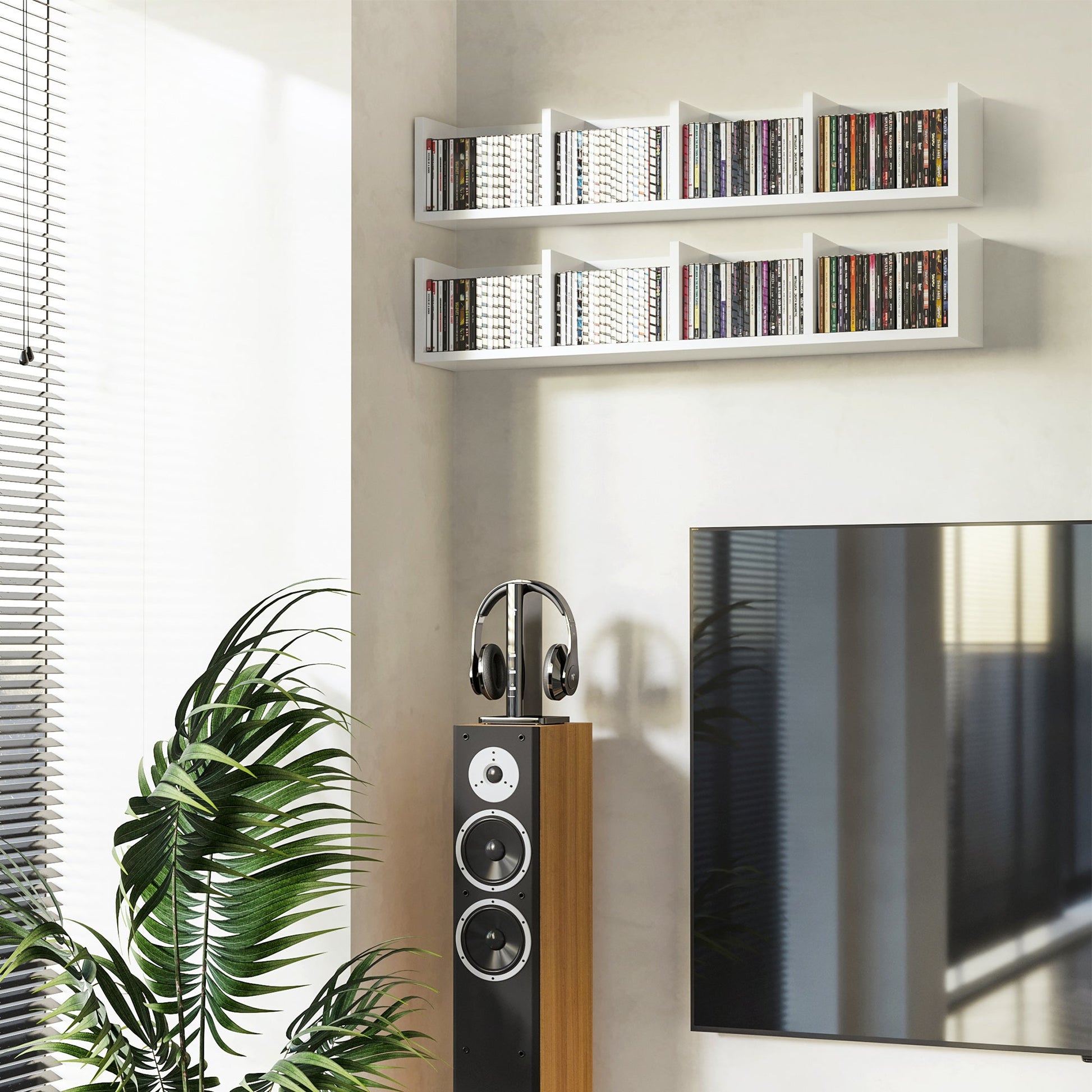 HOMCOM Wall Mount 84 CD / 56 DVD/Blu-ray/ Media Storage Rack 4 Cubes, Wooden Shelf Organiser Unit Bookcase Display, Set of 2, White