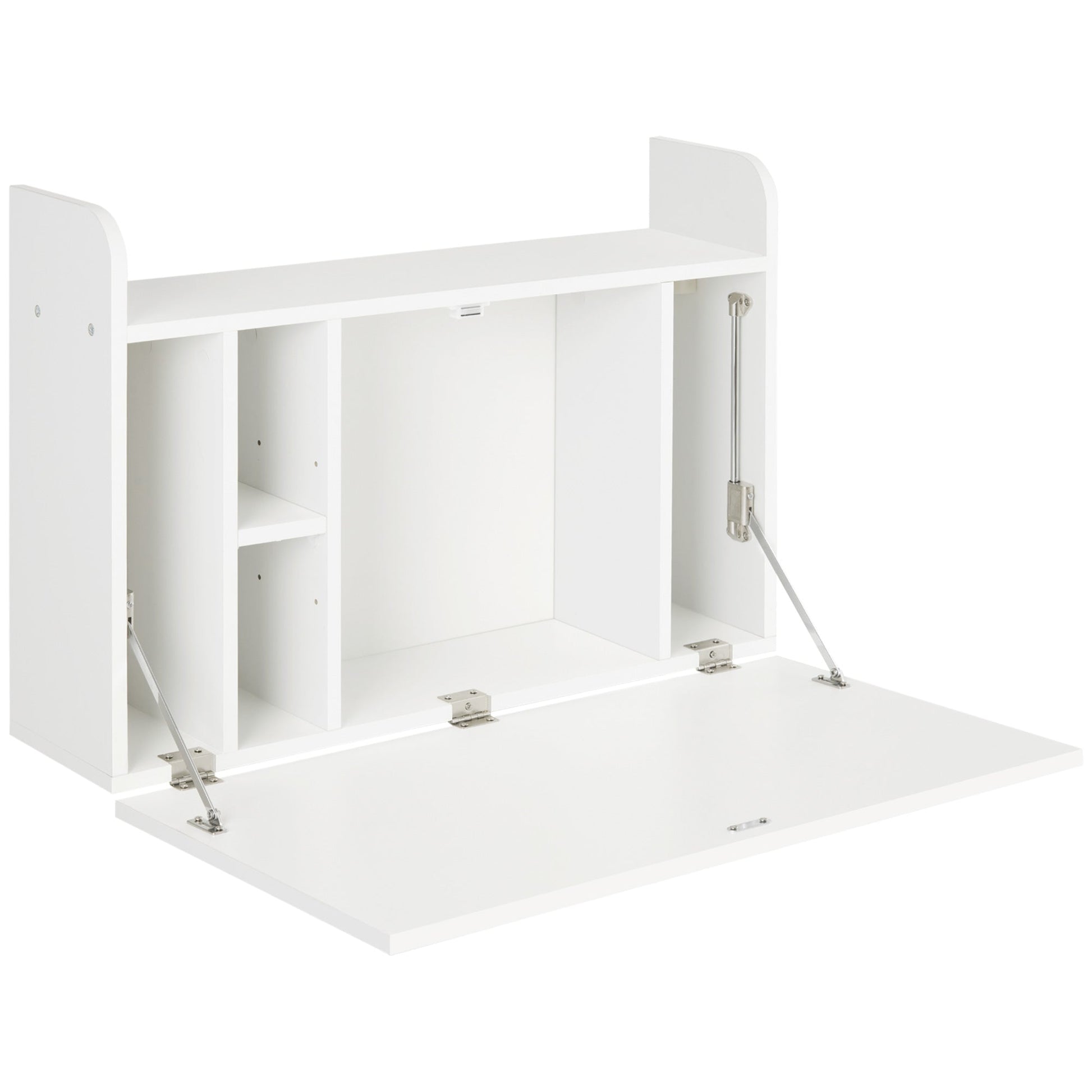 HOMCOM Wall Mounted Table, Drop Leaf Floating Laptop Desk with Space Saving Storage Compartments for Home Office and Study, 77cm x 20cm x 51cm, White